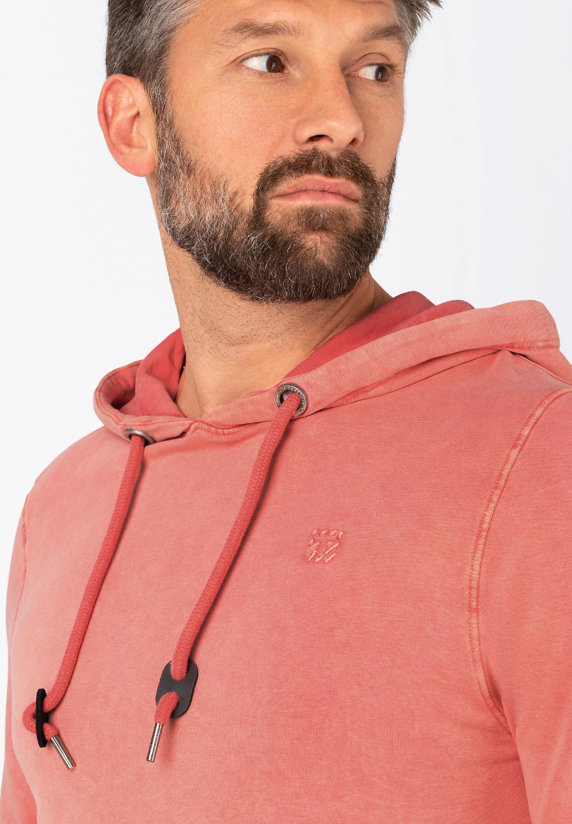 Schafft sofort eine entspannte Atmosphäre, ist immer superlässig und obendrein gemütlich: der Kapuzenpullover. Das perfekte Basic-Piece ist aus soft gewaschener, stretchiger Baumwolle-Terry-Qualität in cooler Vintage-Optik und hat ein kuschelig geraute Innenseite. Die Features: eine große, gefütterte Kapuze mit XL-Logo-Metall-Ösen und kernigen, runden Kordeln, seitlich eingesetzte Ripp-Details und zeitlose Rippbündchen an Ärmeln und Saum. Die Nähte: moderne Baby-Flatlocks.