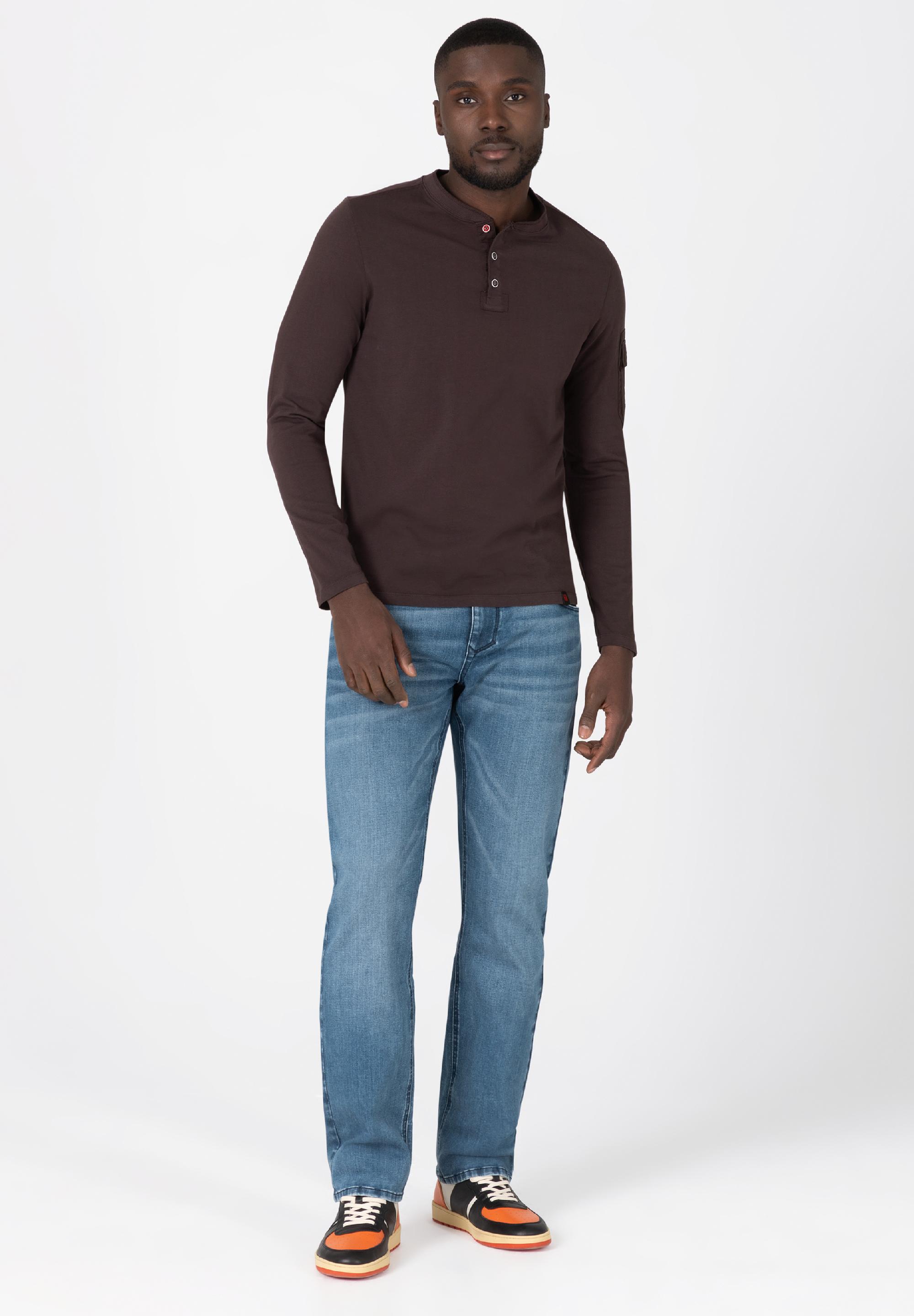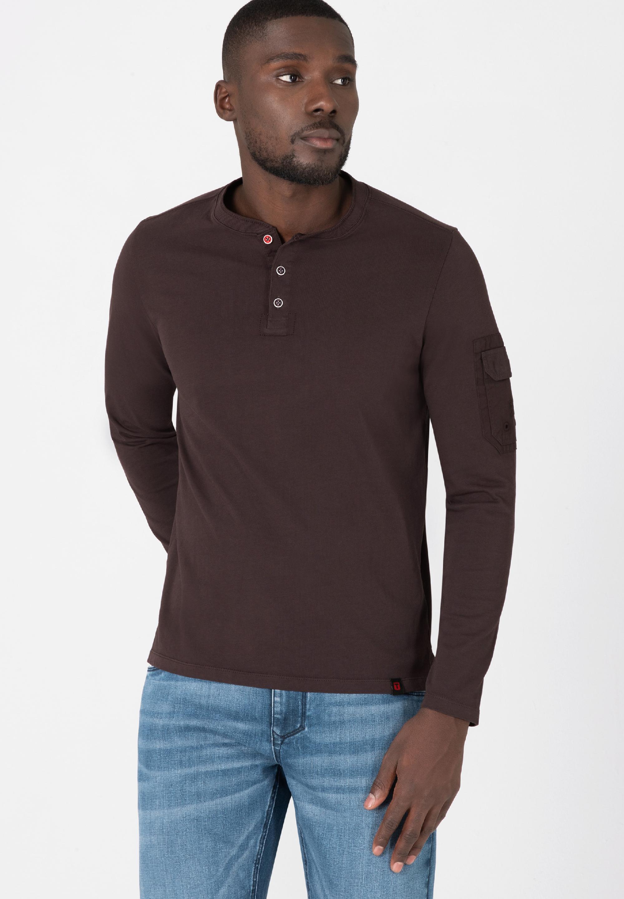 Es ist die bekannteste Alternative zum Poloshirt und steht für eine bequemen und mühelosen Stil: Das Henley Shirt. Seine coole Ausstrahlung erhält das Shirt durch das Fehlen des typischen Umlegekragens. Stattdessen hat es einen gerippten Rundhalsausschnitt und eine kurze Knopfleiste, die man immer offen tragen sollte, nie zugeknöpft! Modell aus hochwertiger, schwerer Baumwoll-Jersey-Qualität. Regulärer Fit mit schmaler Schulterpasse, fein verstuften Saumlängen und kurzen Seitennaht-Schlitzen.