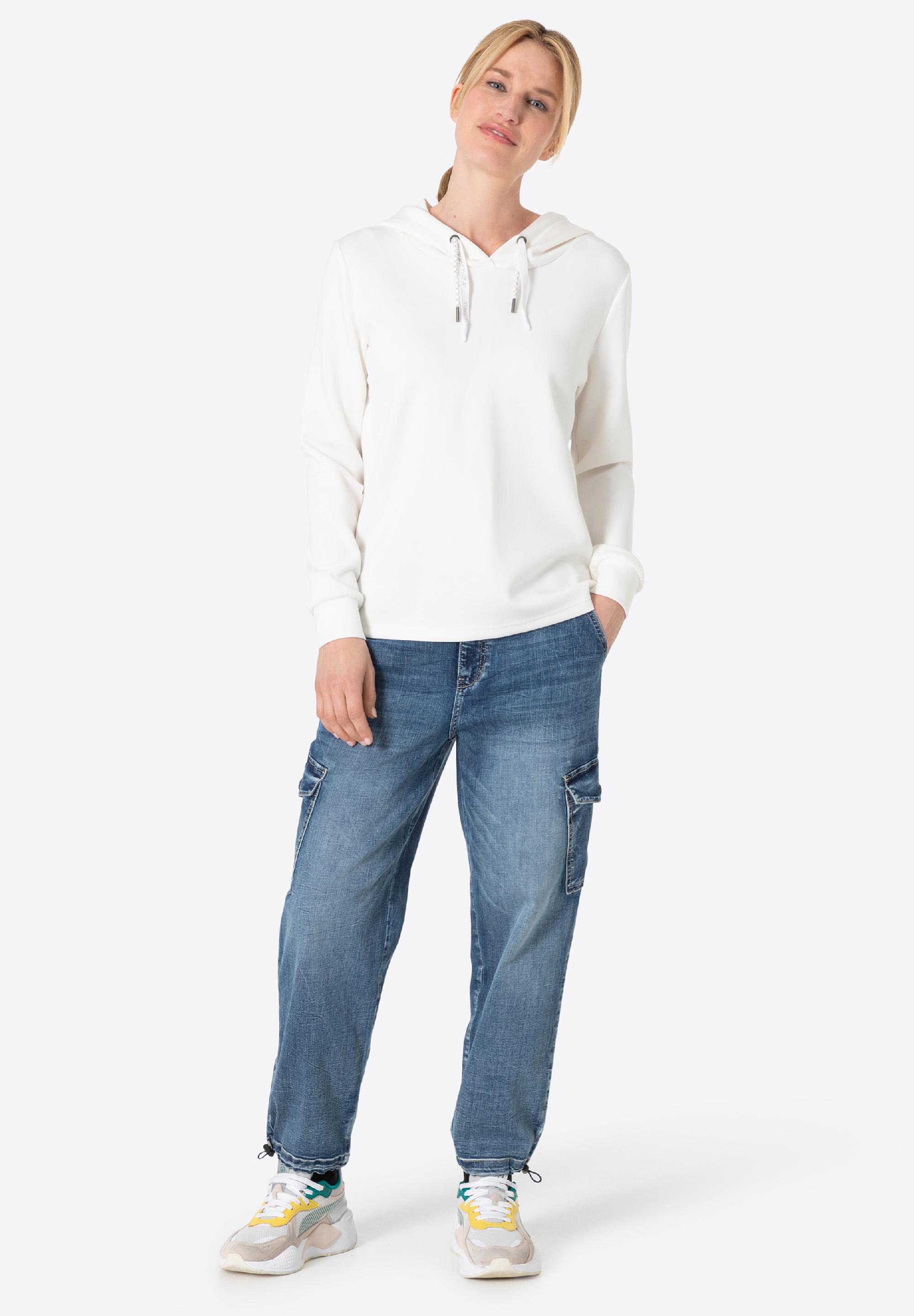 Cleanes Design mit modischer Raffinesse: der superlässige Hoodie aus sehr weichem, glattem Interlock-Jersey in angesagter Scuba-Qualität. Die hochwertige, elastische Modal-Mischung hat einen matten, edlen Glanz und eine glatte Rückseite. Modell mit langen Ärmeln mit Bündchen und geradem Saum. Cool: Statt nur einer Kordel im Kapuzenrand hat dieser Hoodie gleich zwei. Eine flache Logo-Kordel und eine runde Sport-Kordel. Schönes Detail: Die Logokordel findet sich auch am Ärmelsaum wieder.