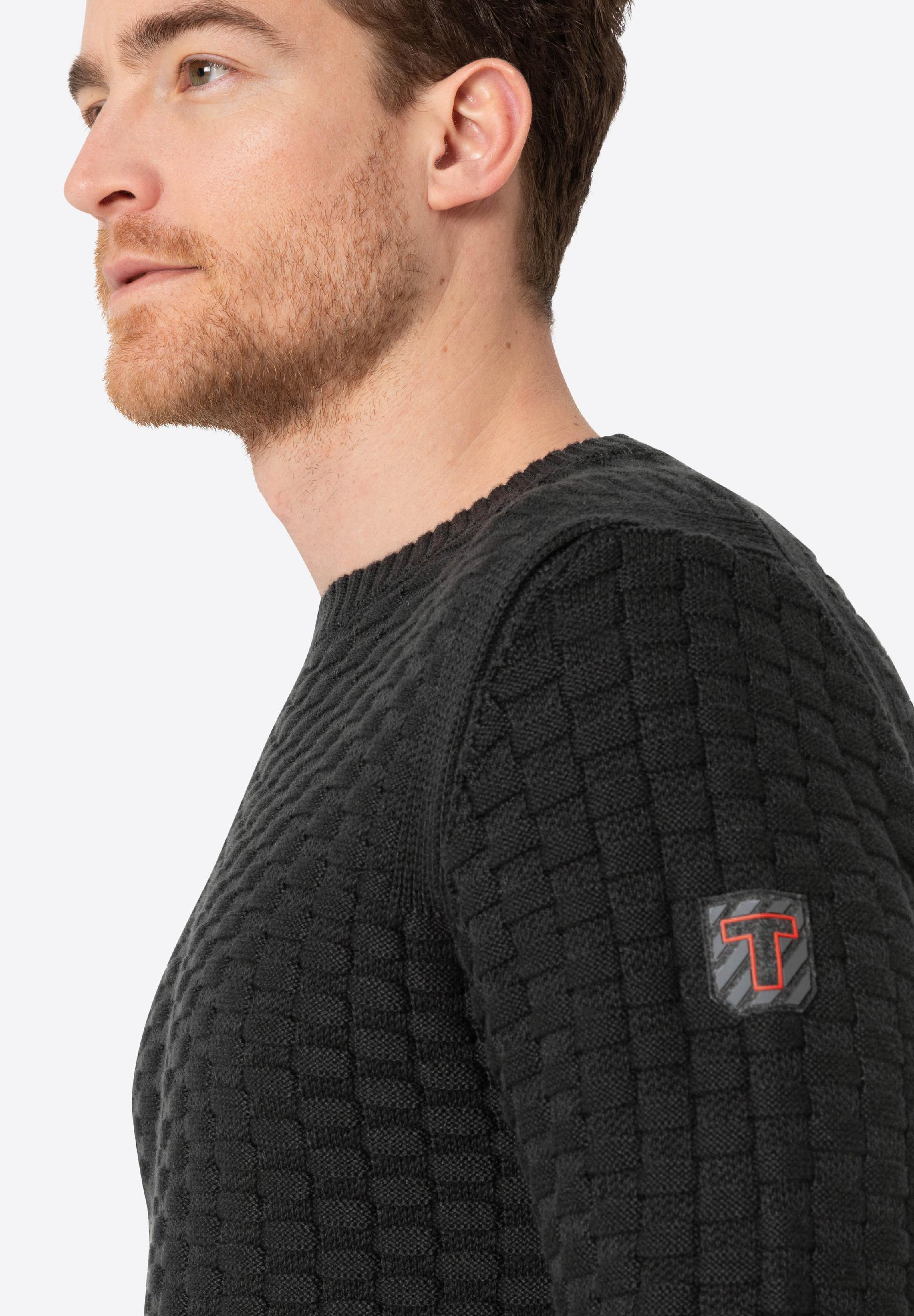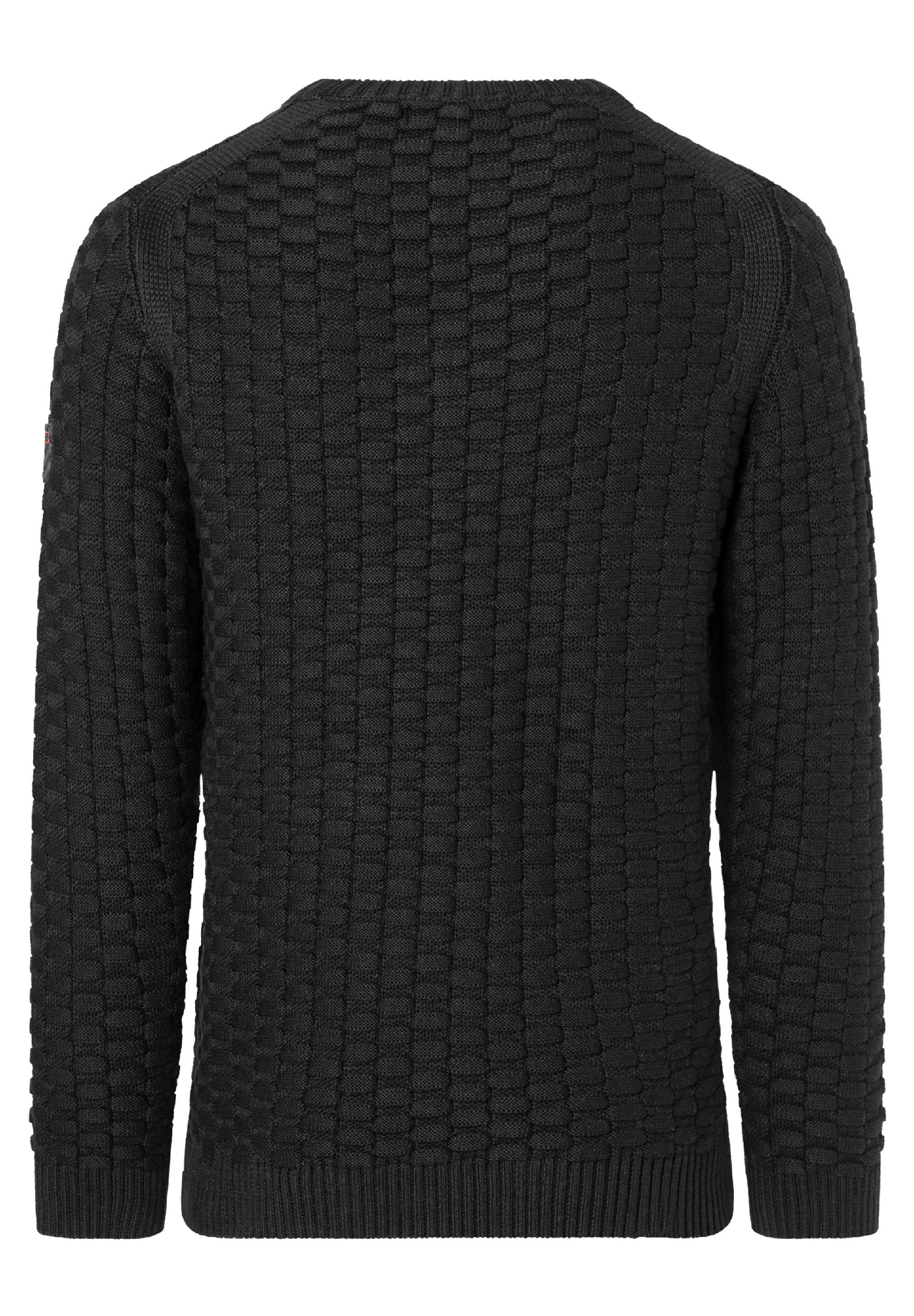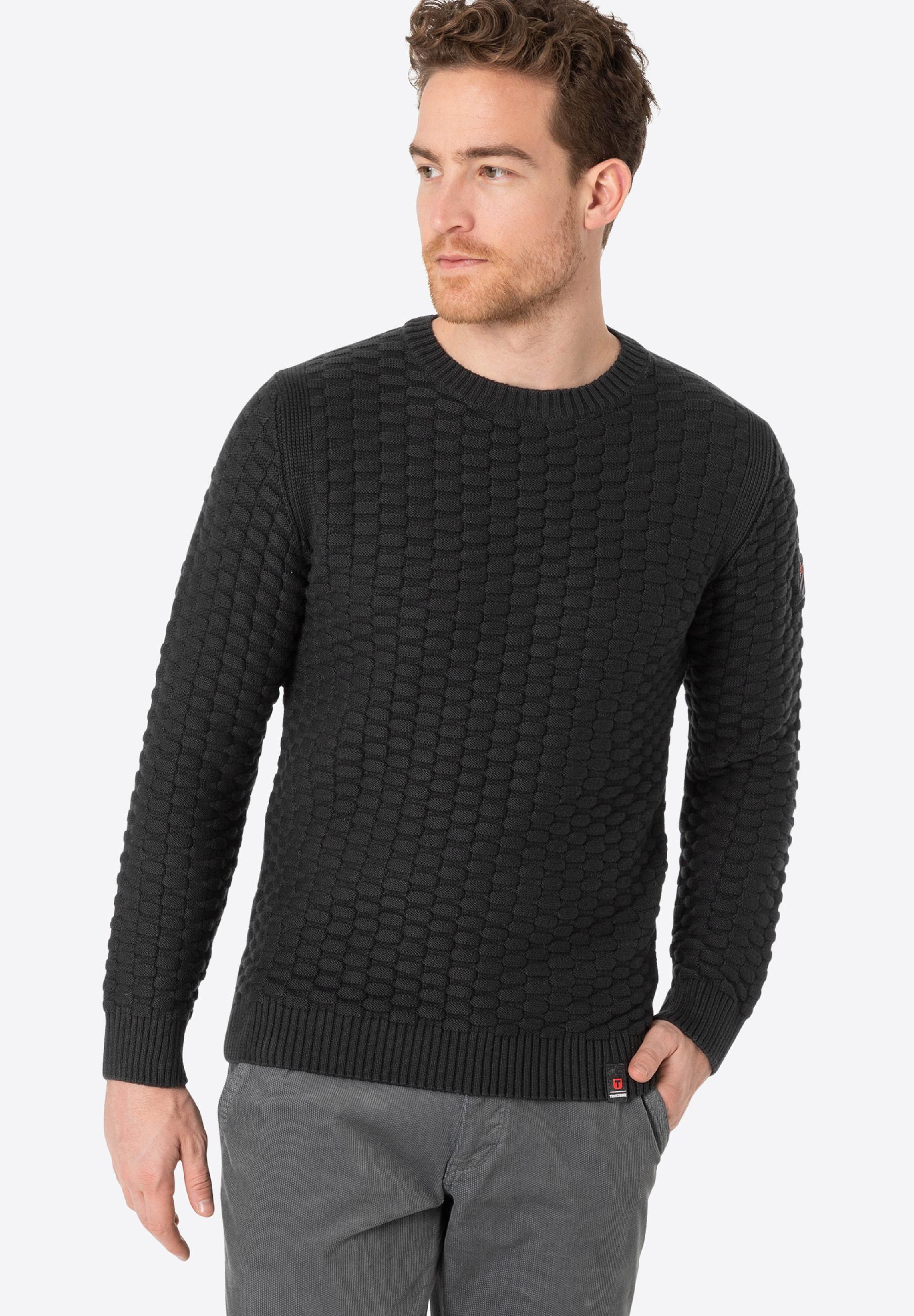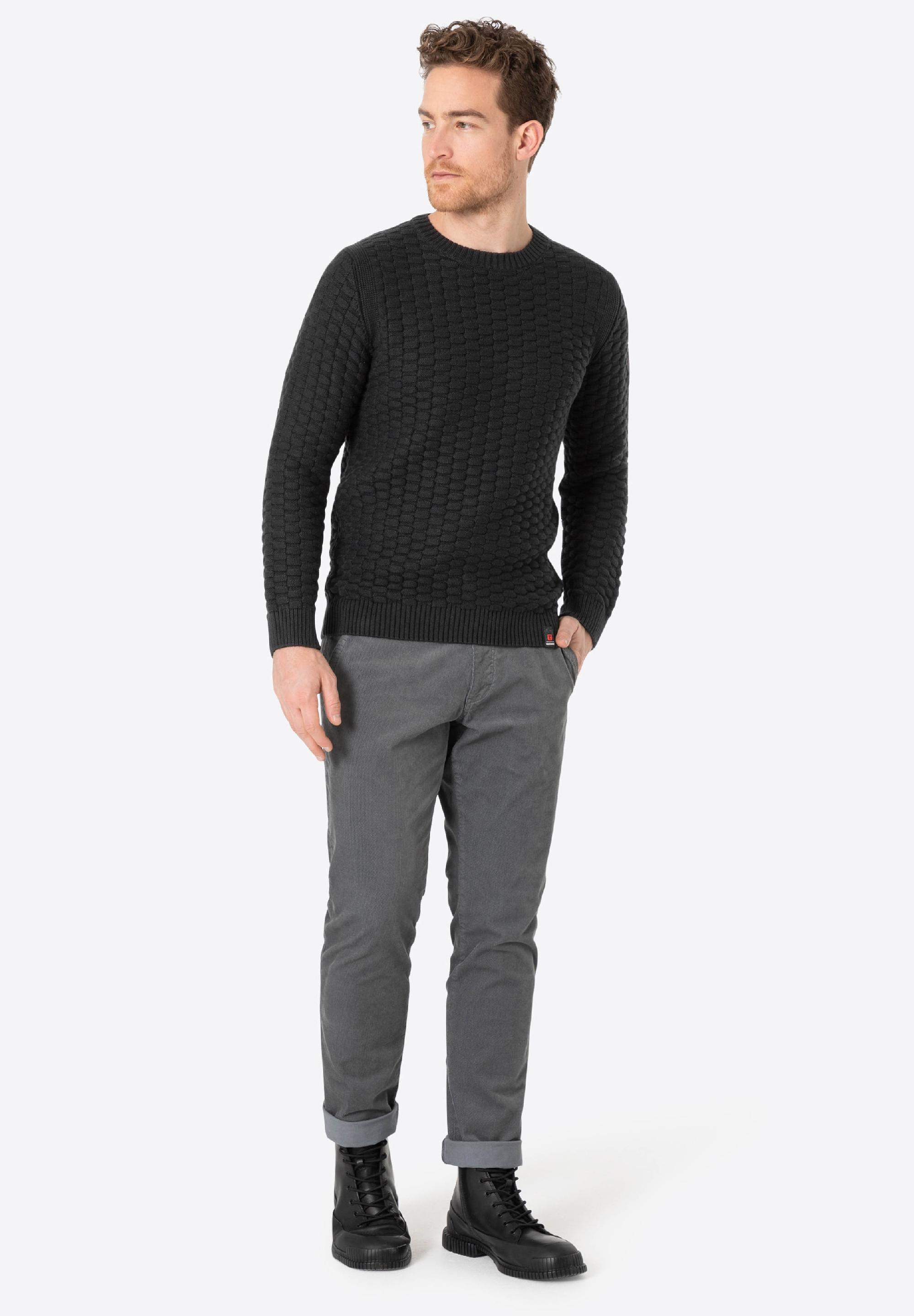 Kernig, maskulin, rough, wie für die Ewigkeit gemacht: Der robuste Rundhals-Strickpullover aus hochwertigem Baumwoll-Polyacryl-Mix. Das Modell hat ein markantes Schachbrett-Strickmuster in 3D-Optik, einen gerippten Ausschnitt, klassische Ärmel- und Saumabschlüsse und eine französische Schulterverarbeitung. Hier sitzt die Schulternaht nicht am obersten Punkt, sondern ist lässig nach hinten versetzt. Stylingtipp: Für ein legeres Casual-Outfit über einem Karohemd und mit einer Chino kombinieren.