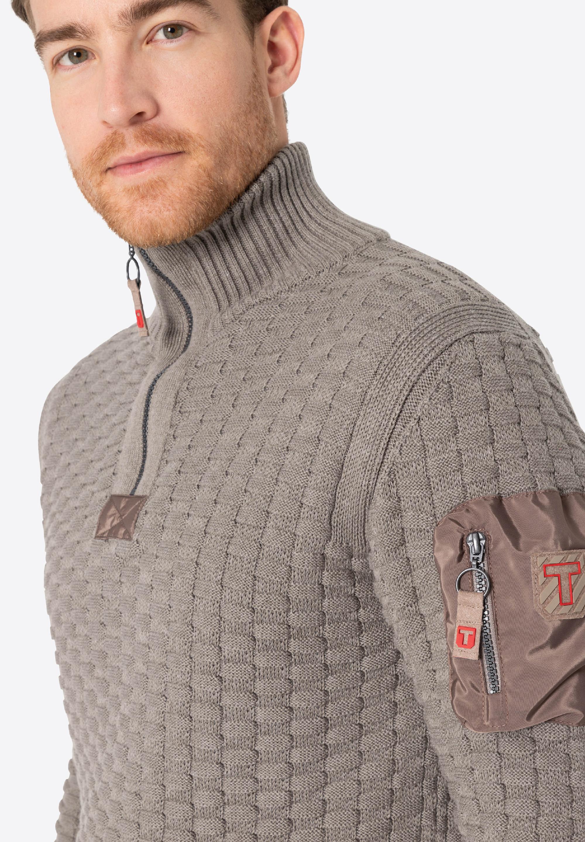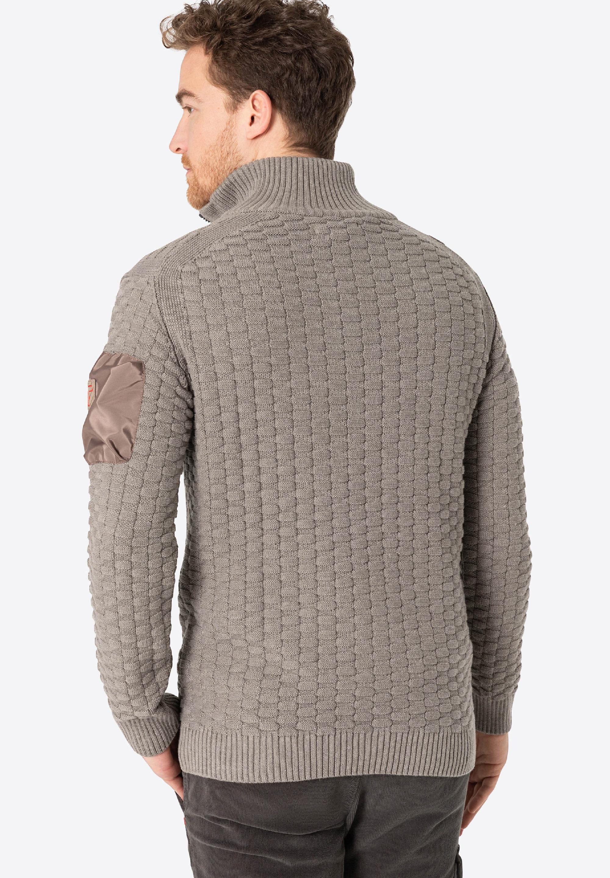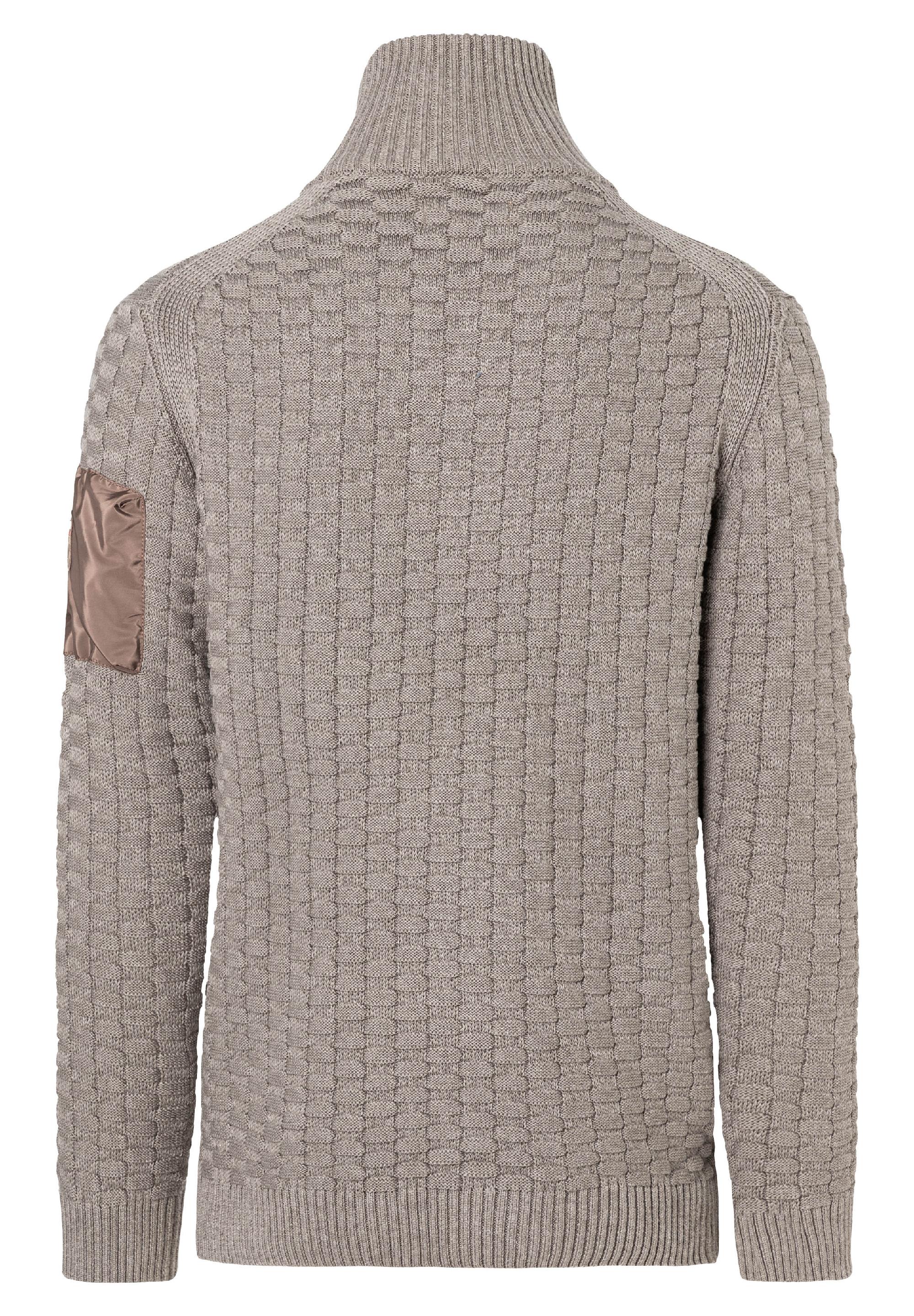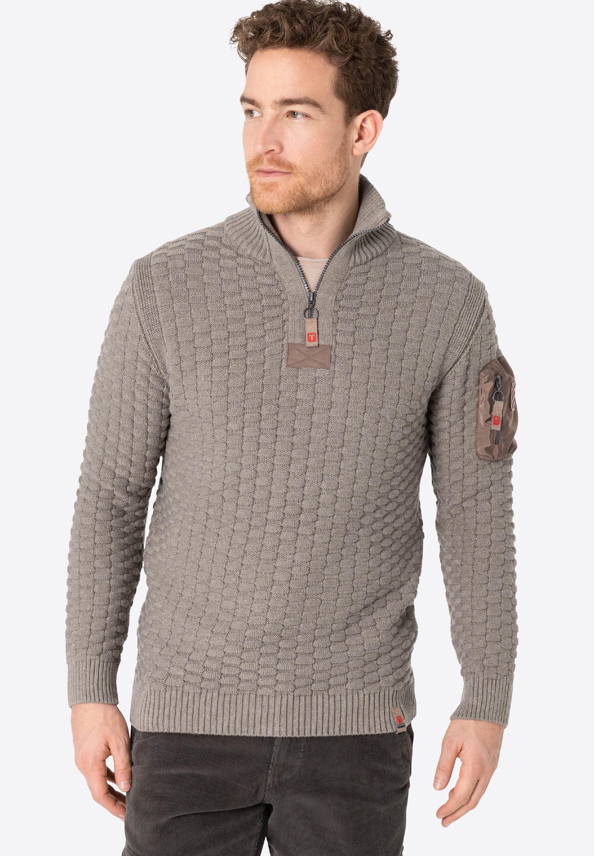 Kernig, wie für Seefahrer gemacht: der robuste Strick-Troyer aus hochwertigem Baumwoll-Polyacryl-Mix. Das Modell hat ein markantes Schachbrett-Strickmuster in 3D-Optik, einen hohen Ripp-Turtleneck-Kragen mit halbem Reißverschluss, klassisch gerippte Ärmel- und Saumbündchen und eine französische Schulterverarbeitung. Hier liegt die Schulternaht nicht am höchsten Punkt, sondern ist lässig nach hinten versetzt. Material-Mix: Die Ärmeltasche mit Reißverschluss ist aus glatt gewebtem Polyester.