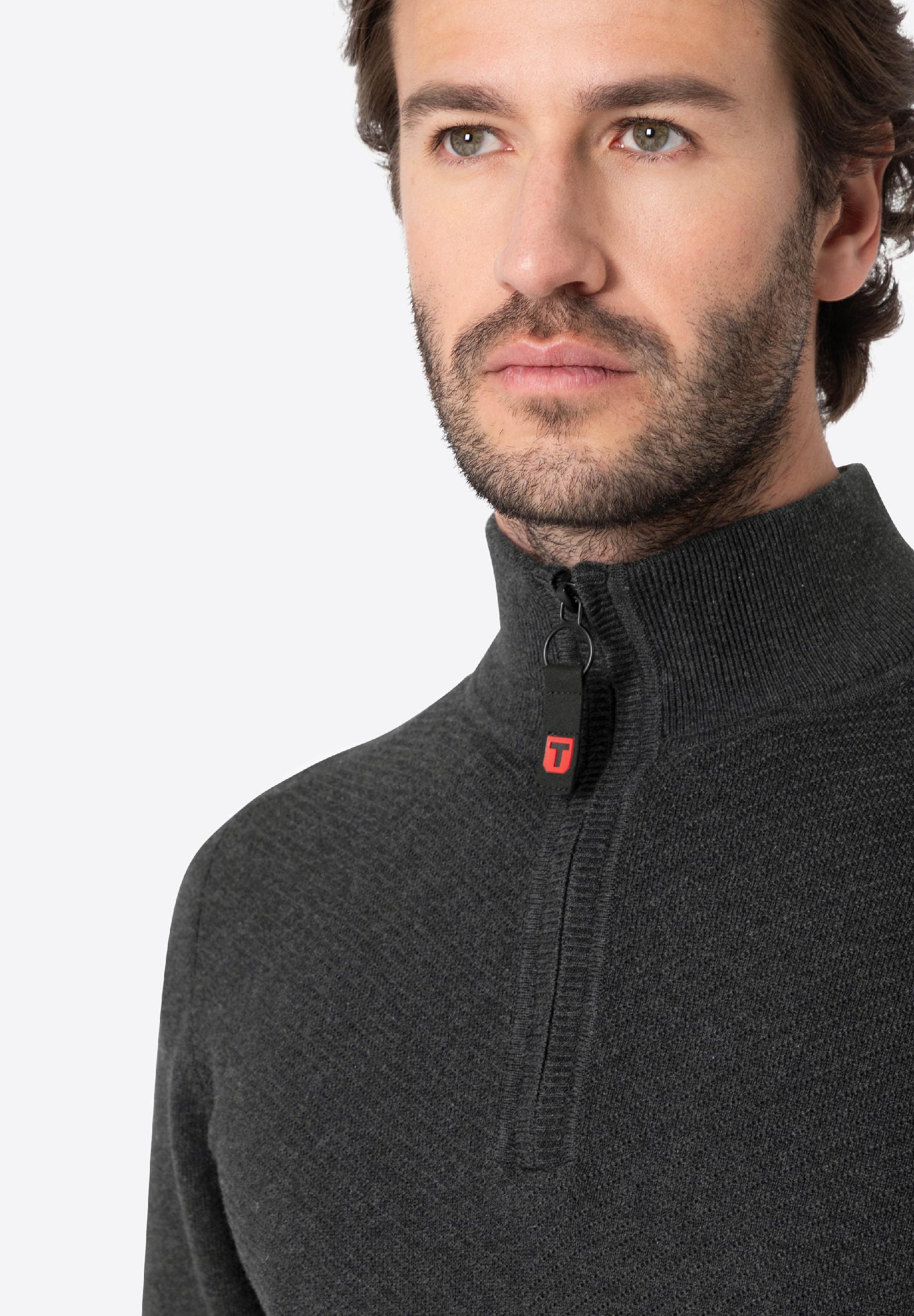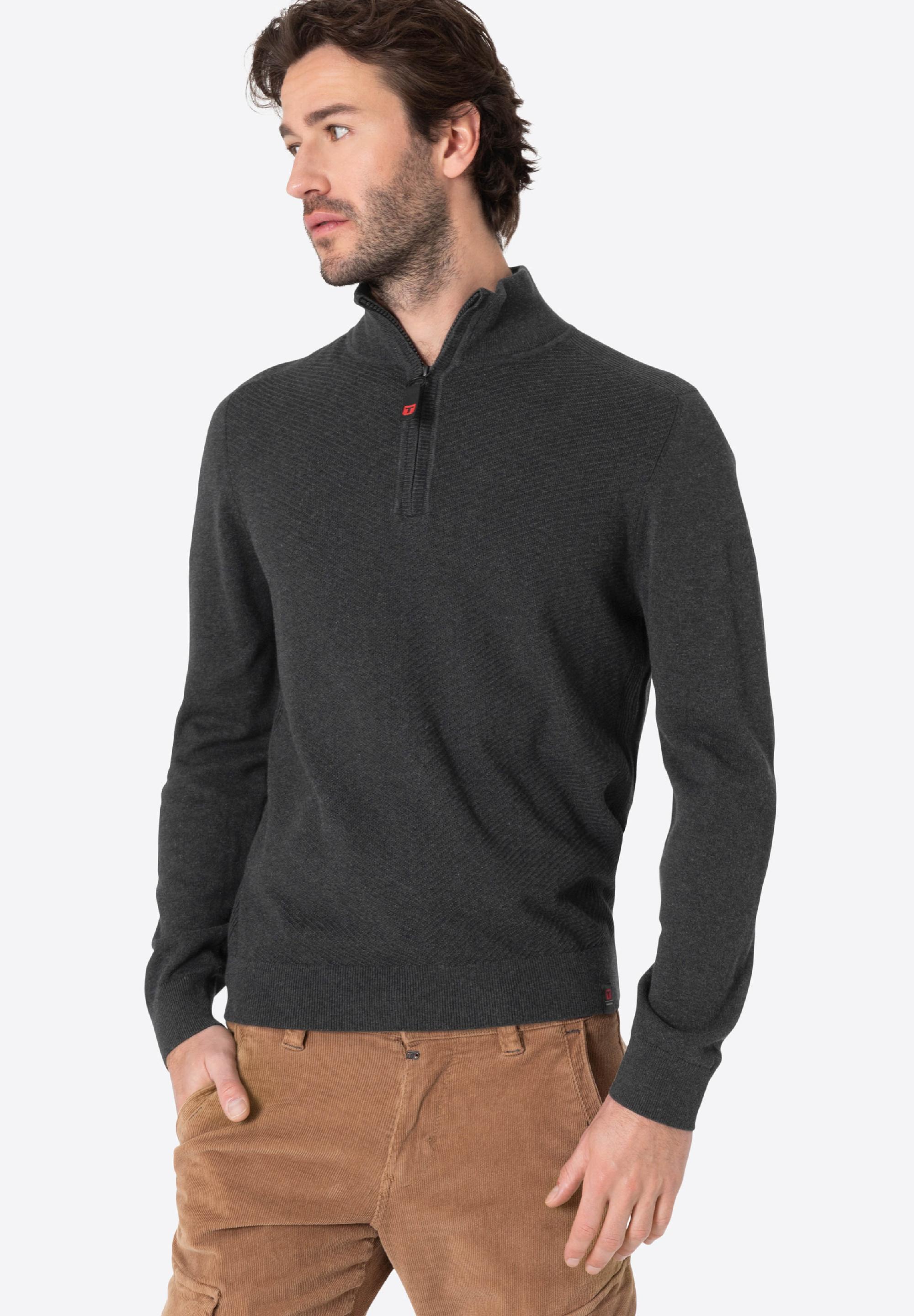 Wenn es ein Basic gibt, das in keiner Garderobe fehlen darf, dann ist es ein clean designter, moderner Troyer für jede Gelegenheit. Perfekt dafür: Das Modell aus weichem Baumwolle-Viskose-Mix mit lässiger Herringbone-Struktur auf dem Vorderteil. Bequemer Regular Fit mit geripptem Turtleneck und gerippter Schulter, langen Ärmeln, kurzem Front-Zipper mit Tubular-Verarbeitung und klassischen Bündchen-Abschlüssen an Ärmeln und Saum. Besonders: Der super-angenehme Tragekomfort und der zeitlose Look.