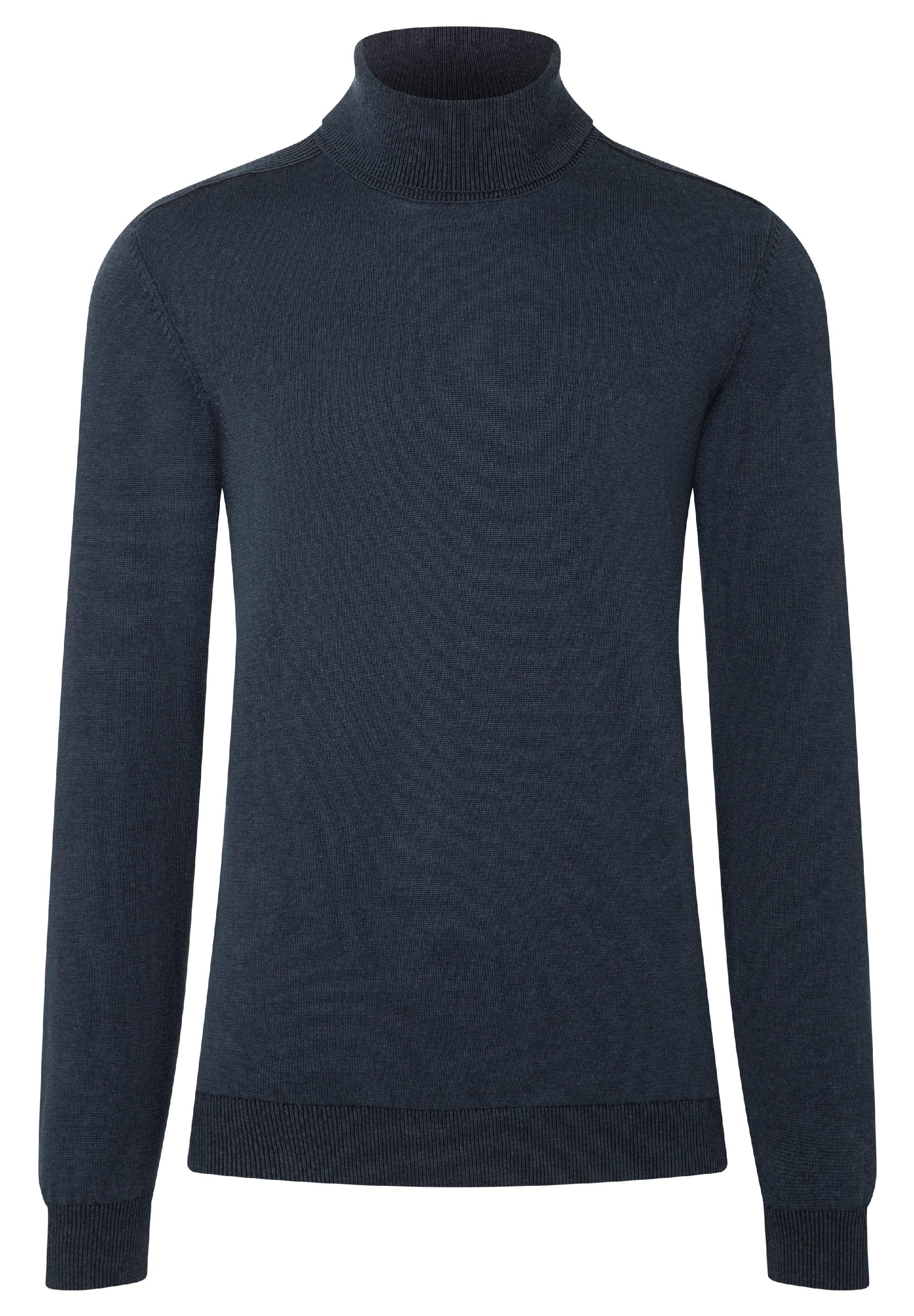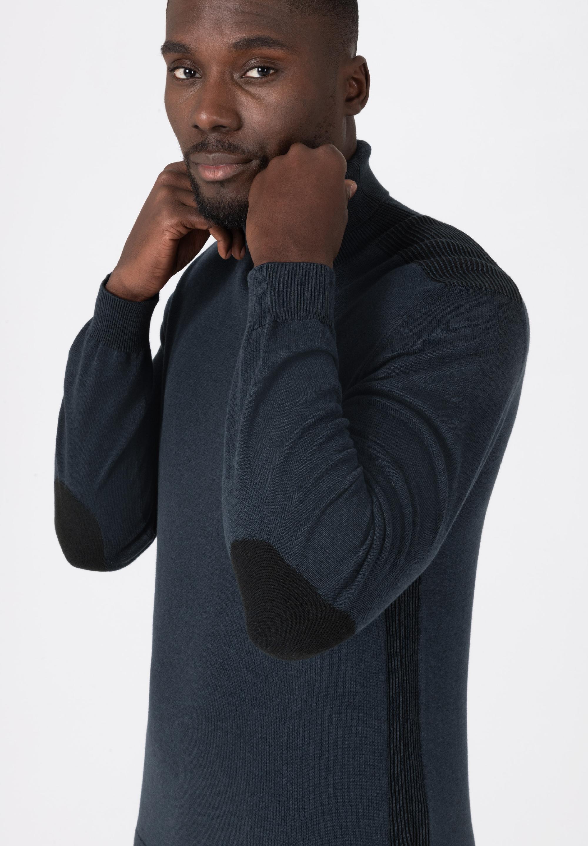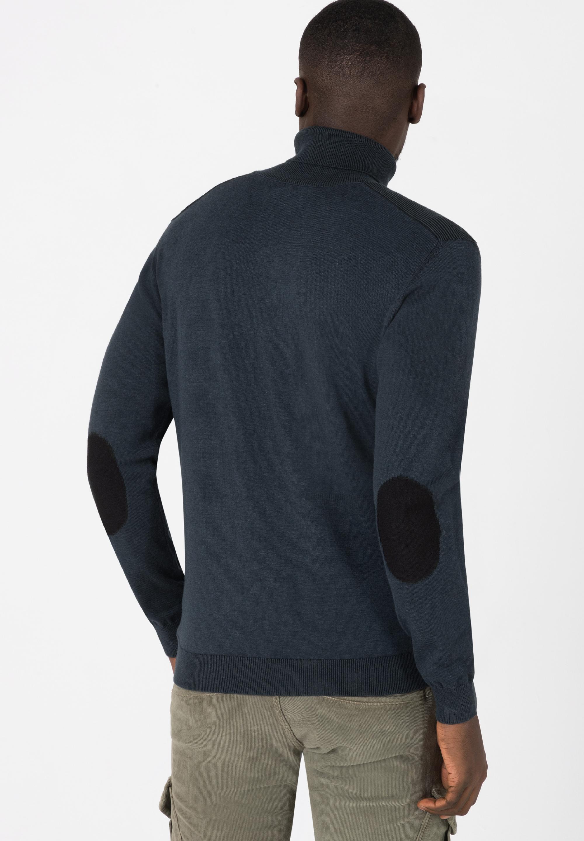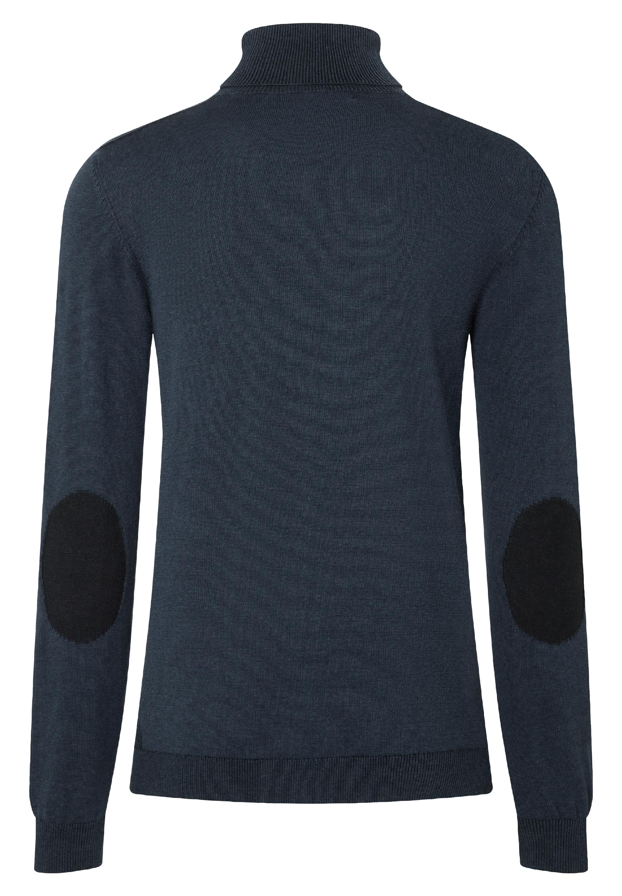 Gehört zu den fünf essenziellen Teilen der männlichen Capsule Wardrobe und ist die winterliche Hemd-Alternative: Der feingestrickte Rollkragenpullover. Das Gute? Der Pullover gilt zwar als elegant, ist aber so bequem wie ein Sweatshirt. Supersoftes Modell aus hochwertigem Baumwolle-Viskose-Mix mit Rippstrick-Details an Kragen, Schulter und Seitennaht. Edel: Mit Fully-fashioned-Verarbeitung am Armloch. Besonders: Der eingestrickte, teilweise kontrastfarbene Ellenbogen-Patch in Intarsien-Technik.