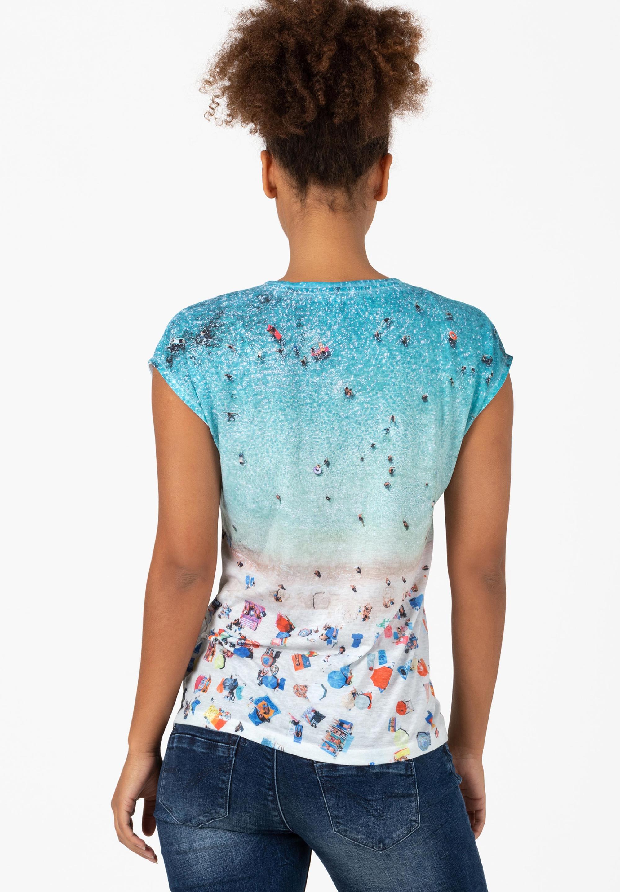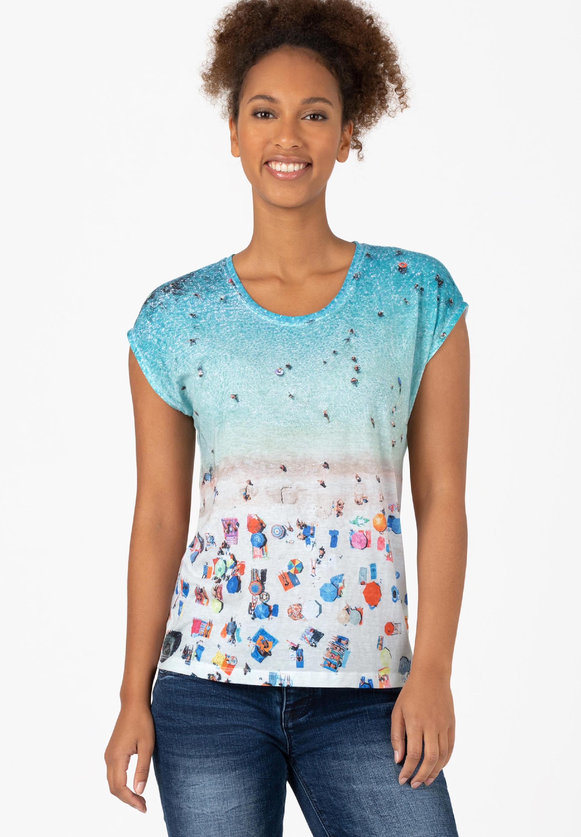 Ist aus superleichter, fast schwebender und unglaublich weicher Single-Jersey-Qualität gefertigt: das superlässige T-Shirt mit dem fotorealistischem Beach-Print. Feminines, ärmelloses Modell mit zeitlosem Rundhalsausschnitt und geradem Saumabschluss. Die Qualität: ein hochwertiger Mix aus Baumwolle und Polyester. Der Print katapultiert uns gedanklich sofort an den Strand und sorgt so für gute Laune.