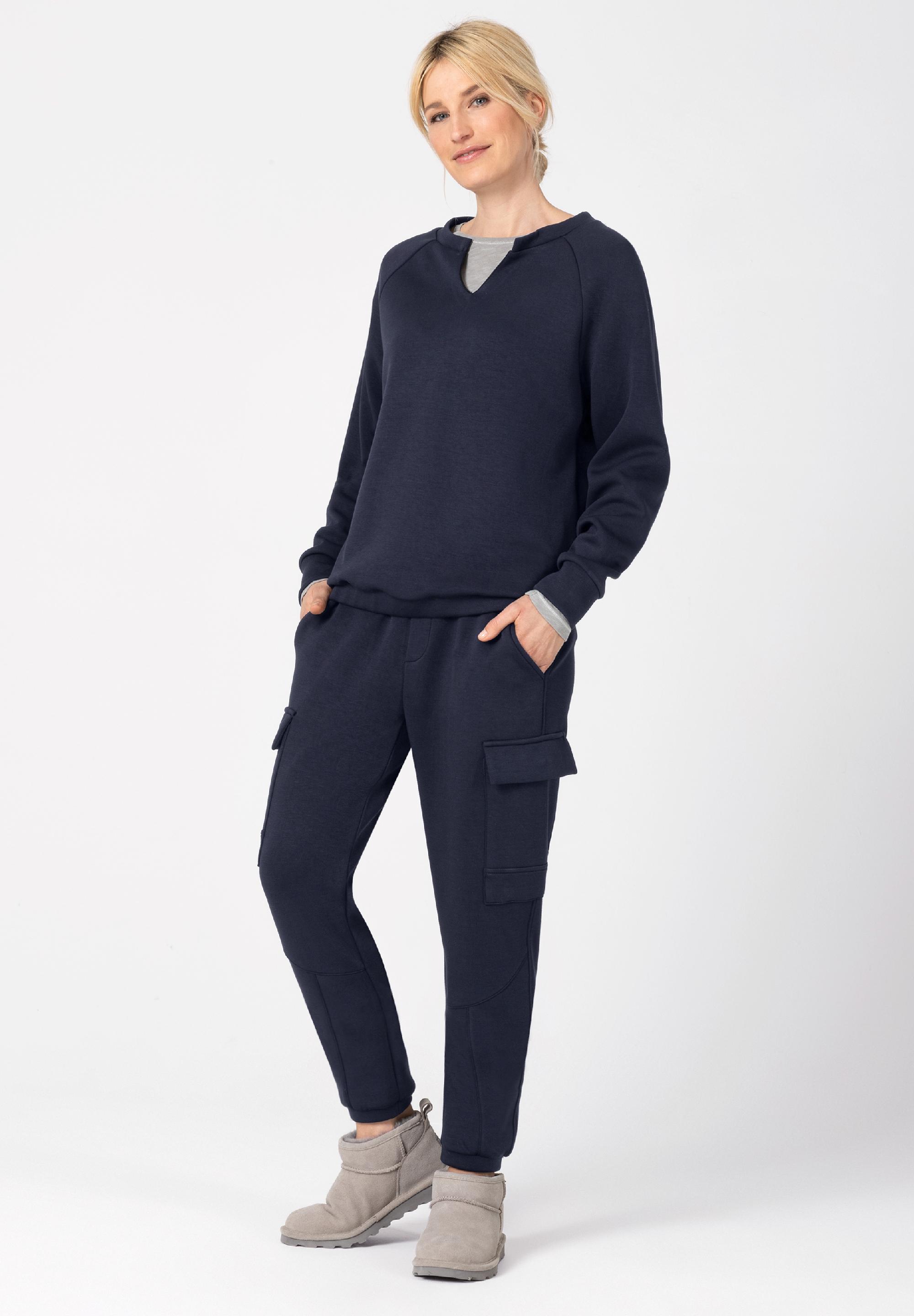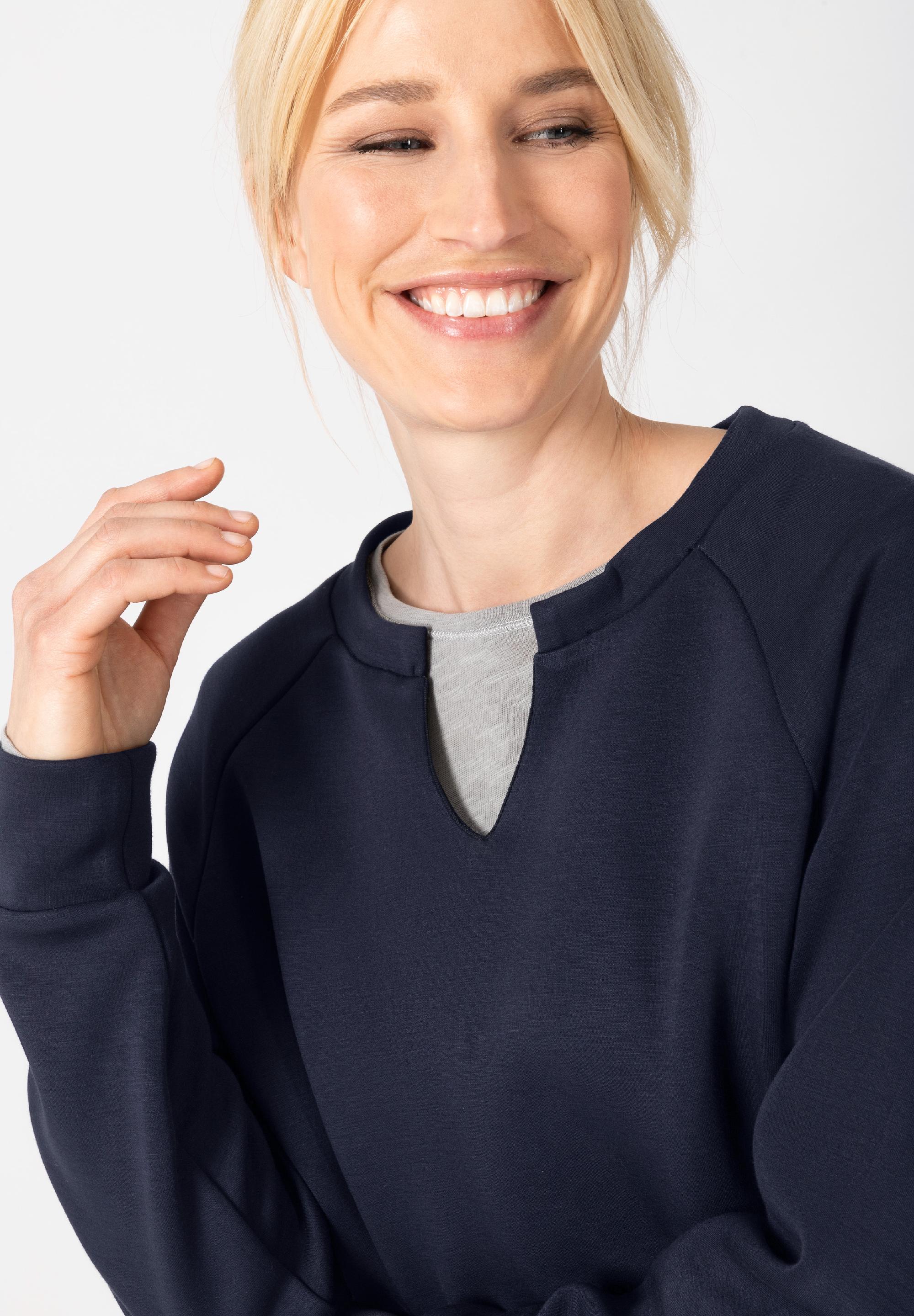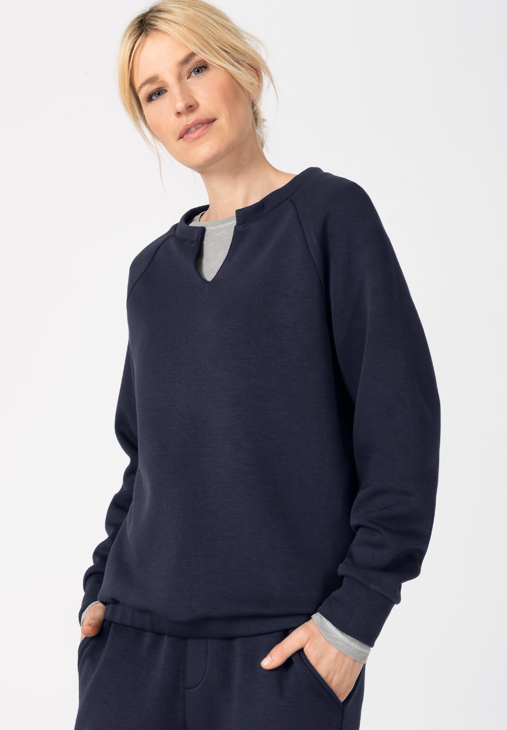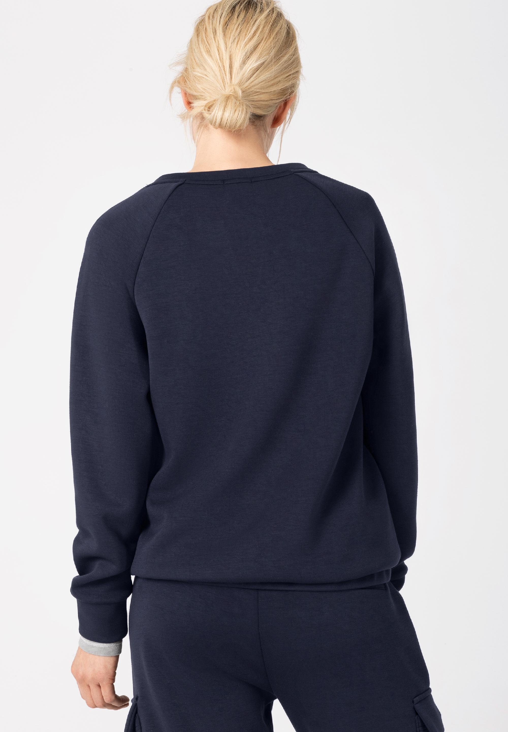 Ein lässiges, modernes Basic-Sweatshirt, zahlreiche, verschiedene Looks: Perfekt für die kommende Wintersaison. Das clean designte Raglan-Modell passt zu Jogg-Pants, Leggings, Puffer-Mantel oder Jeans genauso gut wie zu Rock, Stiefeletten oder Sneakers. Das Sweatie ist aus einer ultrasoften und glatten Interlock-Ware in Neopren-Optik hergestellt und hat vorne einen geschlitzten Rundhalsausschnitt mit Mesh-Tape, lange Ärmel und einen Saum mit elastischem, kompaktem Bündchen-Abschluss.