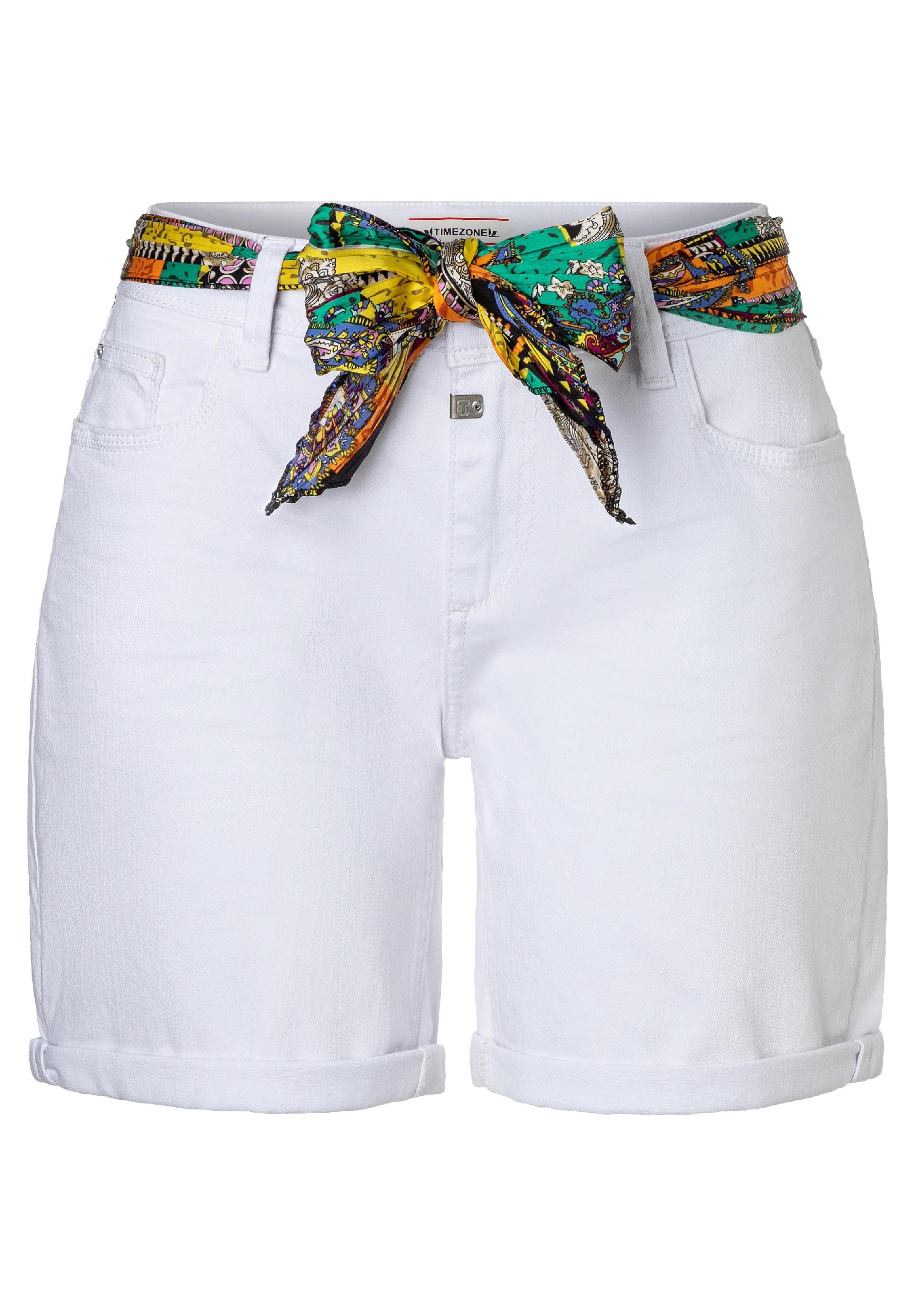 Unverzichtbare Deluxe-Shorts-Variante für Damen! Das lässige, kleine Hosen-Modell mit dem abnehmbaren, plissiertem Tuchgürtel. Aus softer, kompakter, gewaschener und gefärbter Denim-Qualität in hochwertigem, stretchigem Baumwolle-Mix. Mit runden Eingrifftaschen und Schmucknieten, aufgesetzten Gesäßtaschen und locker gekrempeltem Saumaufschlag. Besonders: die kernigen Nähte und das echte Leder-Label am Bund hinten. Styling-Tipp: den Tuchgürtel als Haarband verwenden oder an die Handtasche binden.
