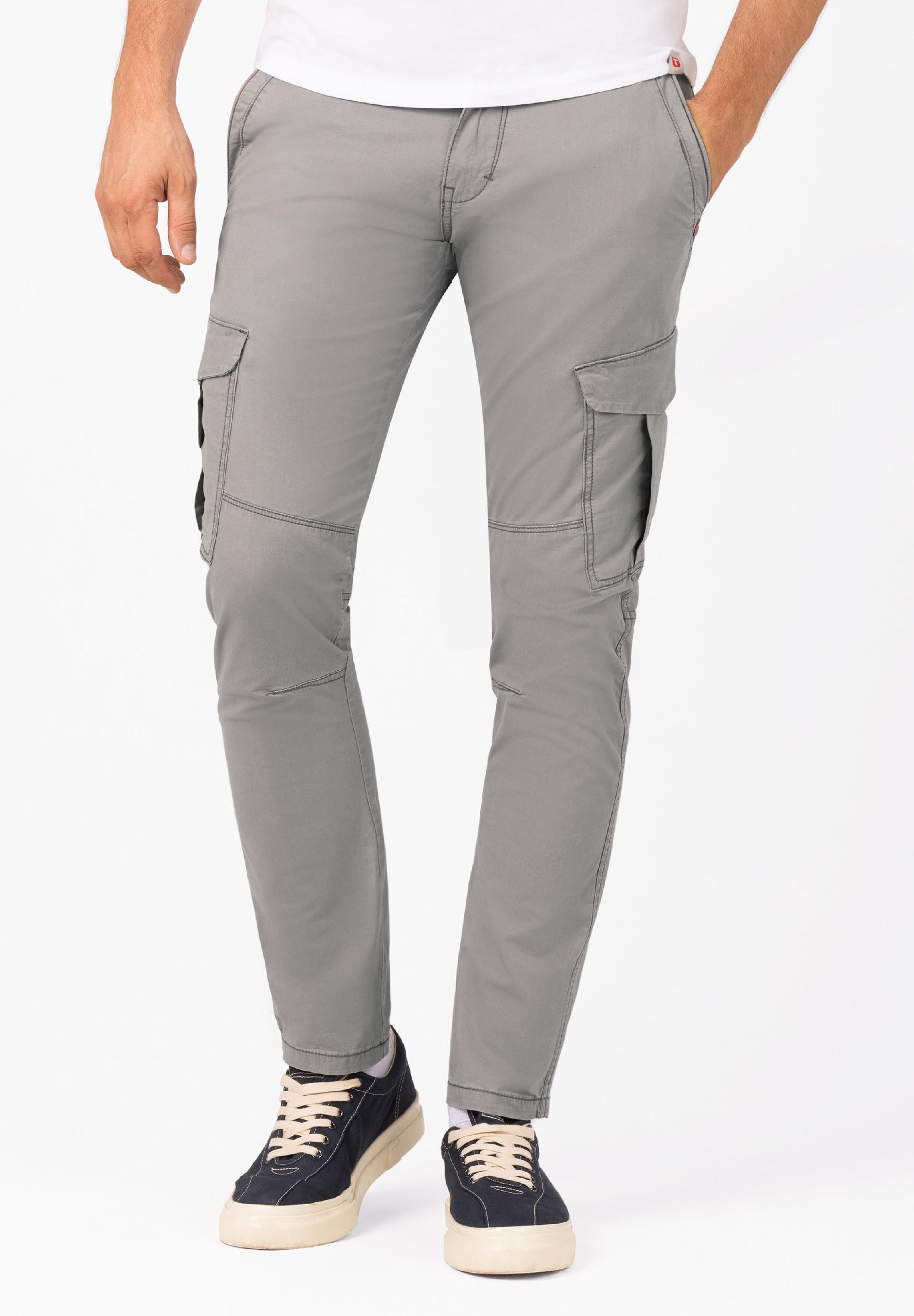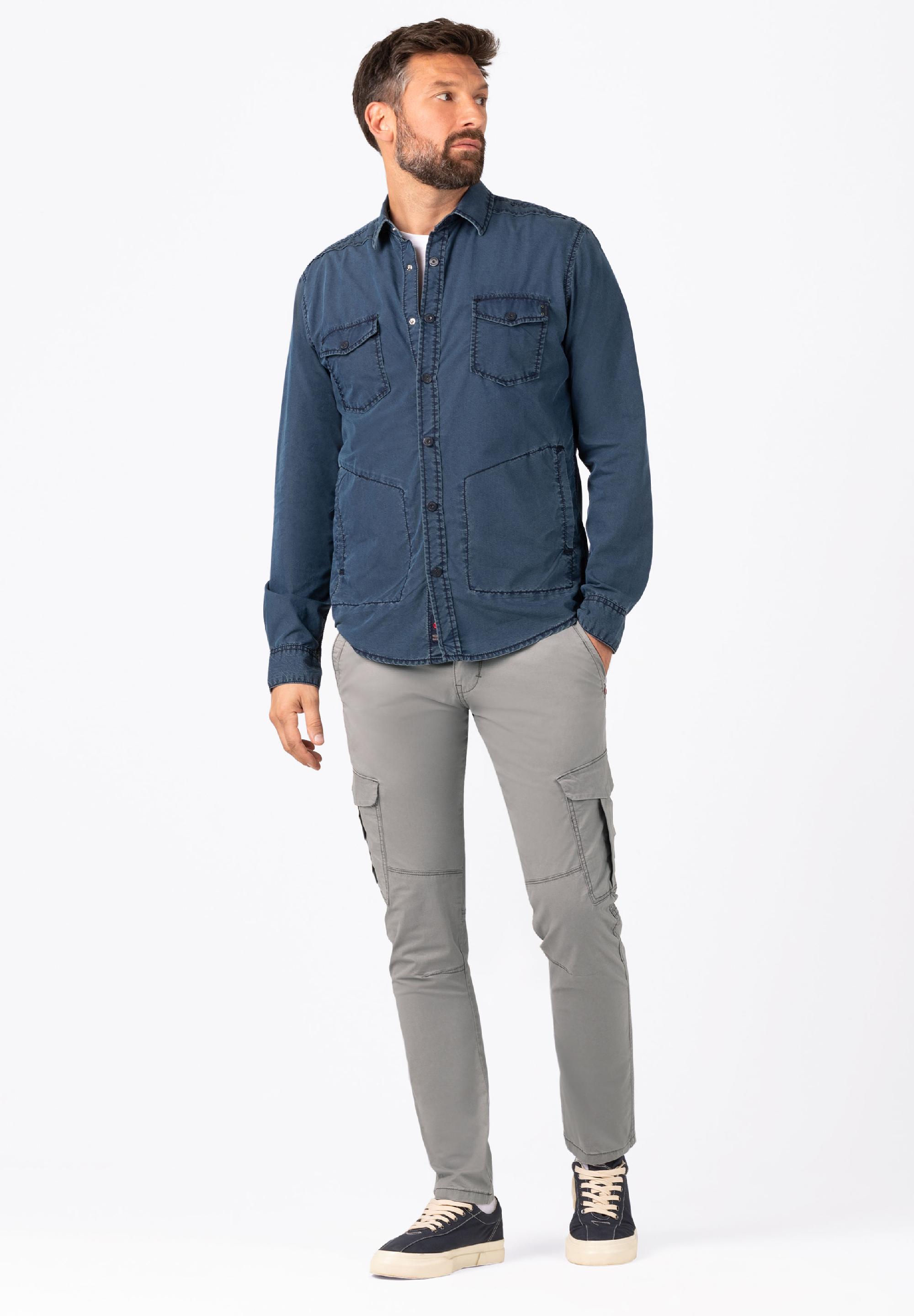 Sind seit den 90er Jahren jede Saison am Start: Cargo-Hosen. Mittlerweile mit modernerem Design und neu entwickelten, noch bequemeren Stoffen. Dieses Modell ist aus einer elastischen, hochwertigen und leichten Twill-Qualität in Baumwolle-Elasthan-Mix gefertigt und hat eine Reguläre Passform mit mittlerer Leibhöhe und schlankem Beinverlauf. Funktional und lässig, die Cargohose lässt sich besonders gut mit sportlichen Komponenten wie Sneakern kombinieren. Charakteristisch: die Taschen seitlich.