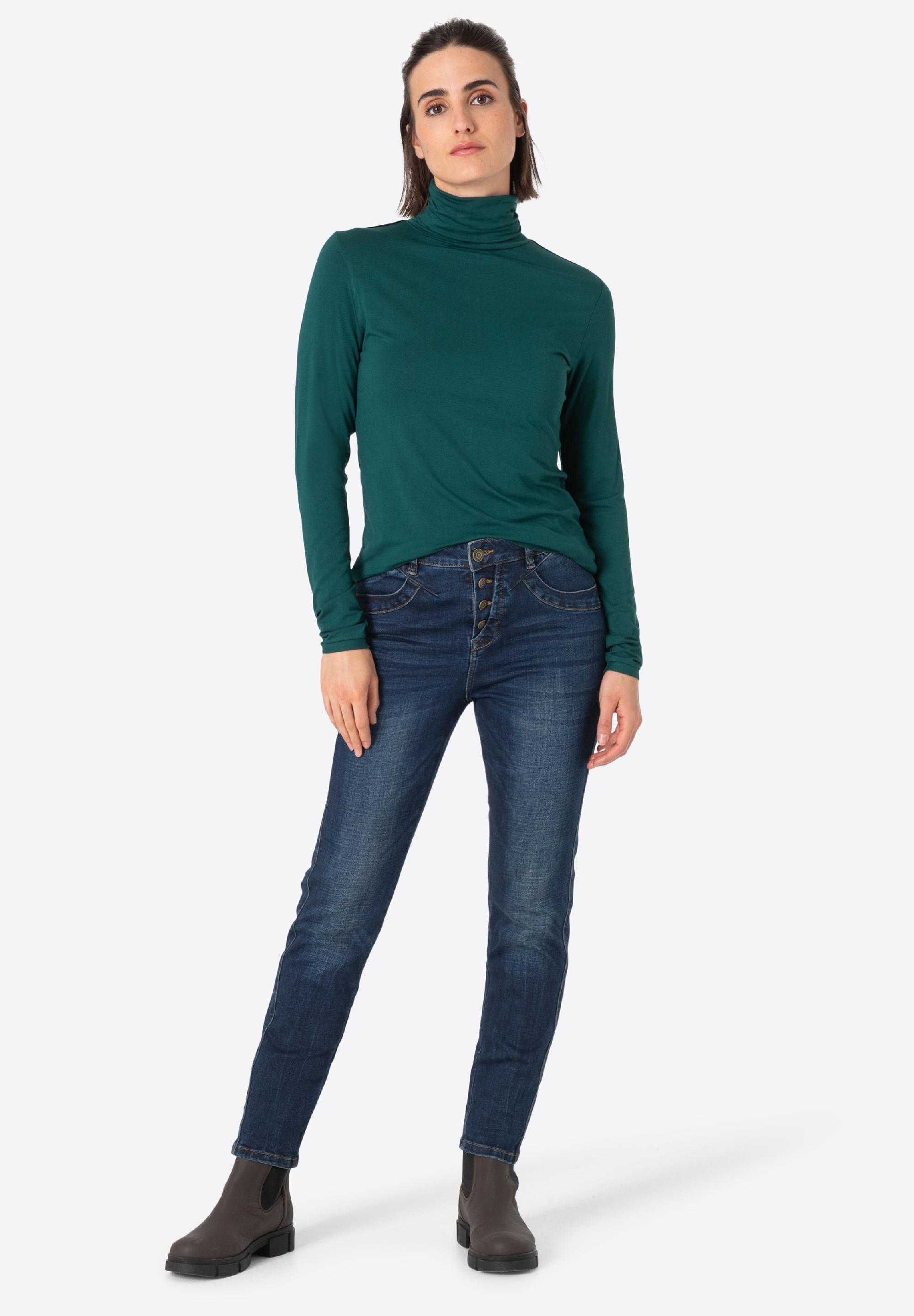 Unser Model ist 176 cm groß und trägt Größe 27/30