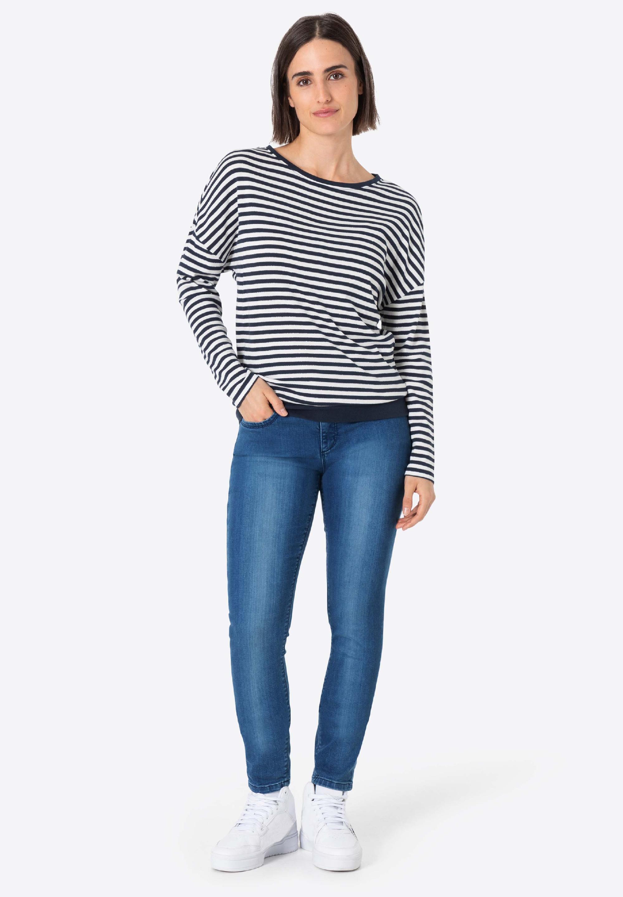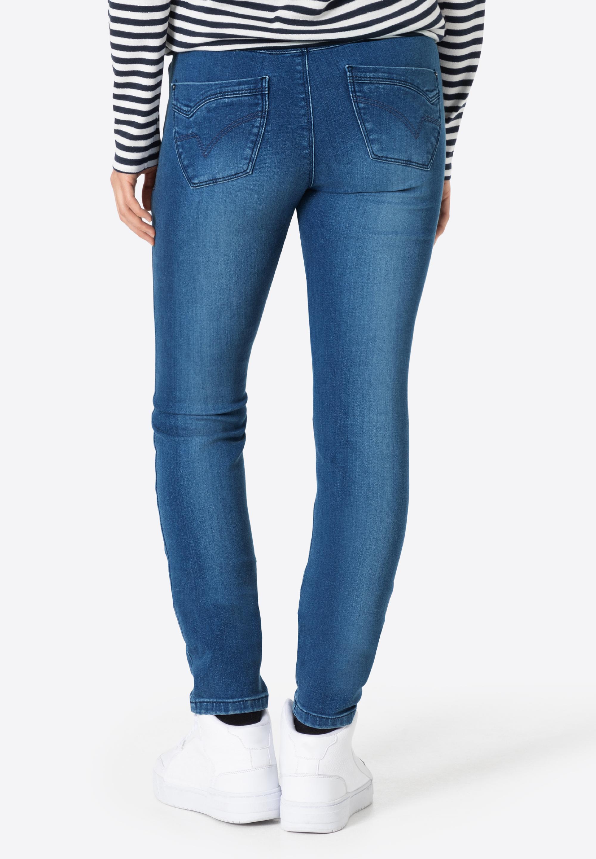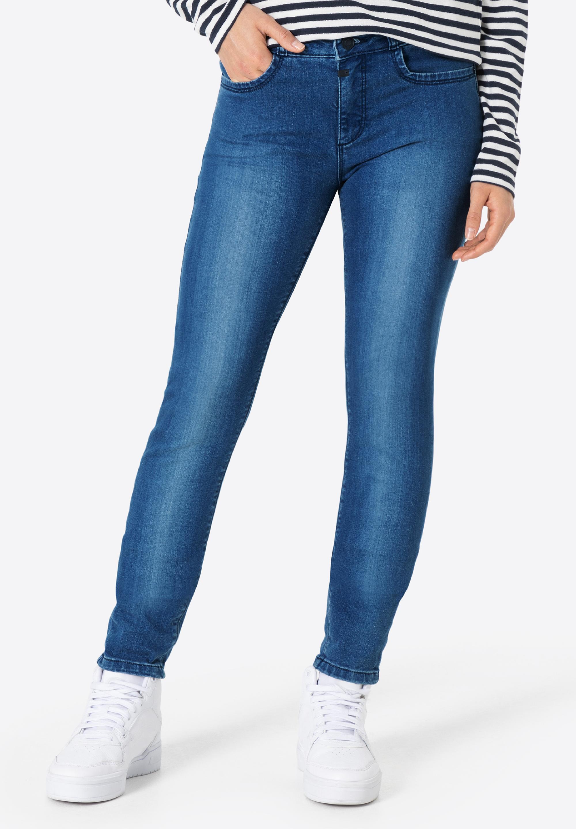 Diese wunderbar feminin geschnittene Jeans ist ein echter Styling-Hero. Durch den hohen Polyester- und Elasthananteil in der Baumwolle entsteht ein toller Stretch-Effekt, der für eine schmale Silhouette und einen perfekt modellierten Po sorgt. In Kombination mit der lässigen, ausgebleichten Light Blue Slimming-Waschung, dem geteilten Bund mit zwei Knöpfen, den coolen Taschendetails und den leicht schräg aufgesetzten Gesäßtaschen entsteht ein moderner, zeitgemäßer Denim-Look, den wir lieben!