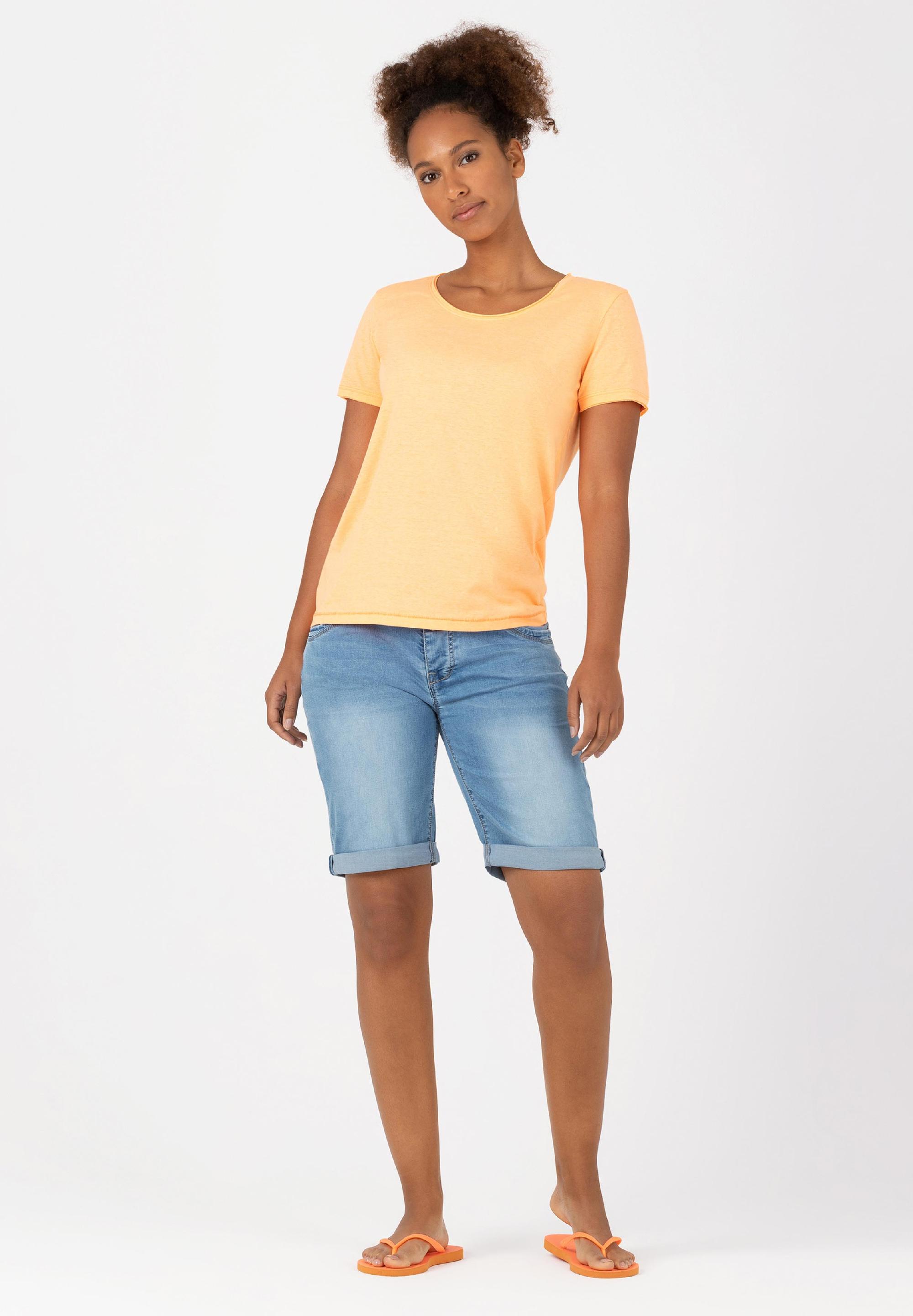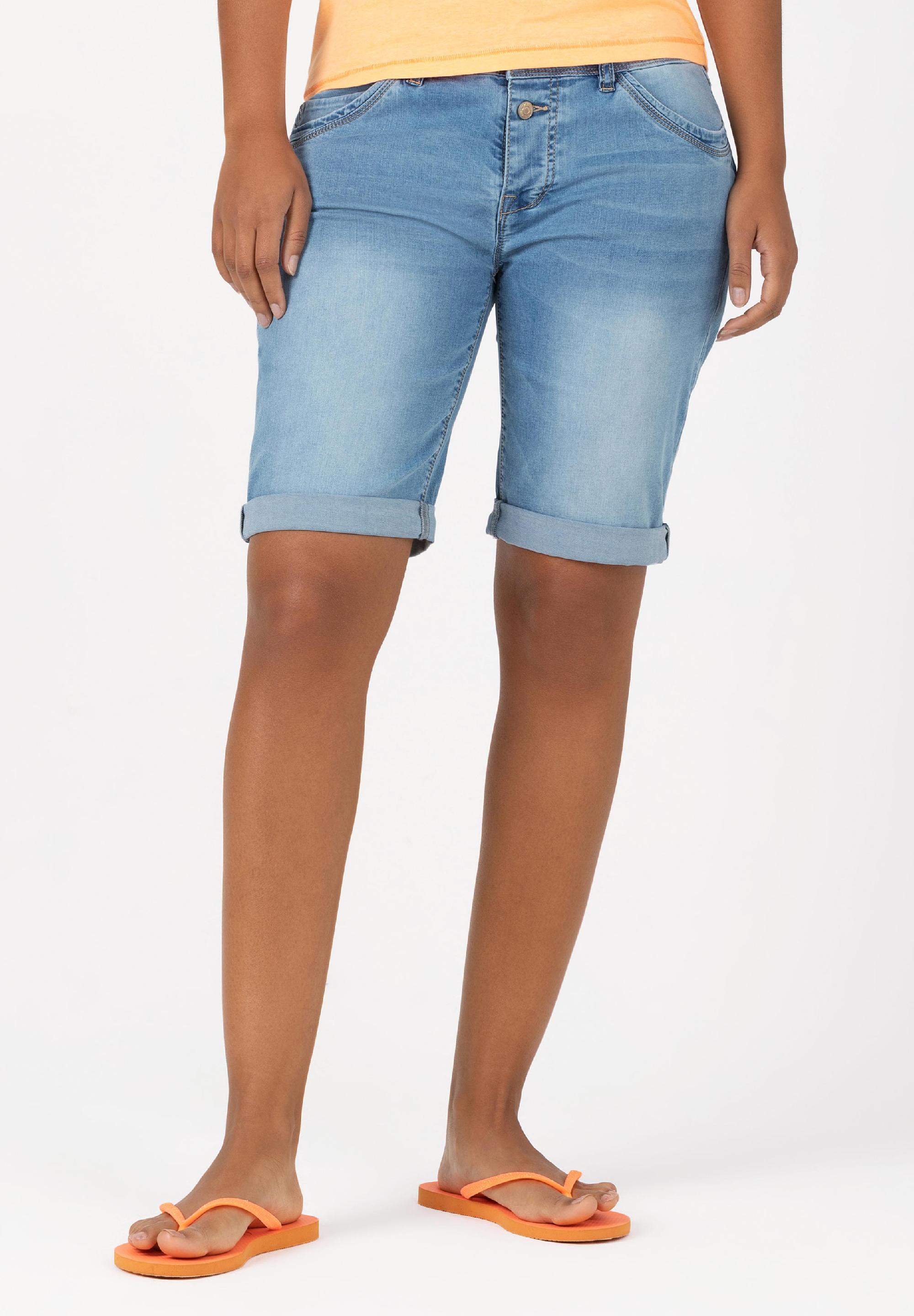 Hat längst Kultstatus erreicht und ist jeden Sommer wieder ganz oben auf der Must-have-Liste: die Jeans-Shorts. Das Slim-Fit-Modell mit der sehr hellen sky mid blue-Waschung, den eingearbeiteten Sitzfalten und den helleren Partien hat einen modischen Twist erhalten: mit zeitgemäßem Design und aufwendigen Details. Die hochwertige Denim-Qualität wird höchsten Ansprüchen gerecht. Sie ist leicht, bequem, sehr soft und hat einen hohen Stretch-Faktor. Moderner Five-Pocket-Stil mit Button-Front.