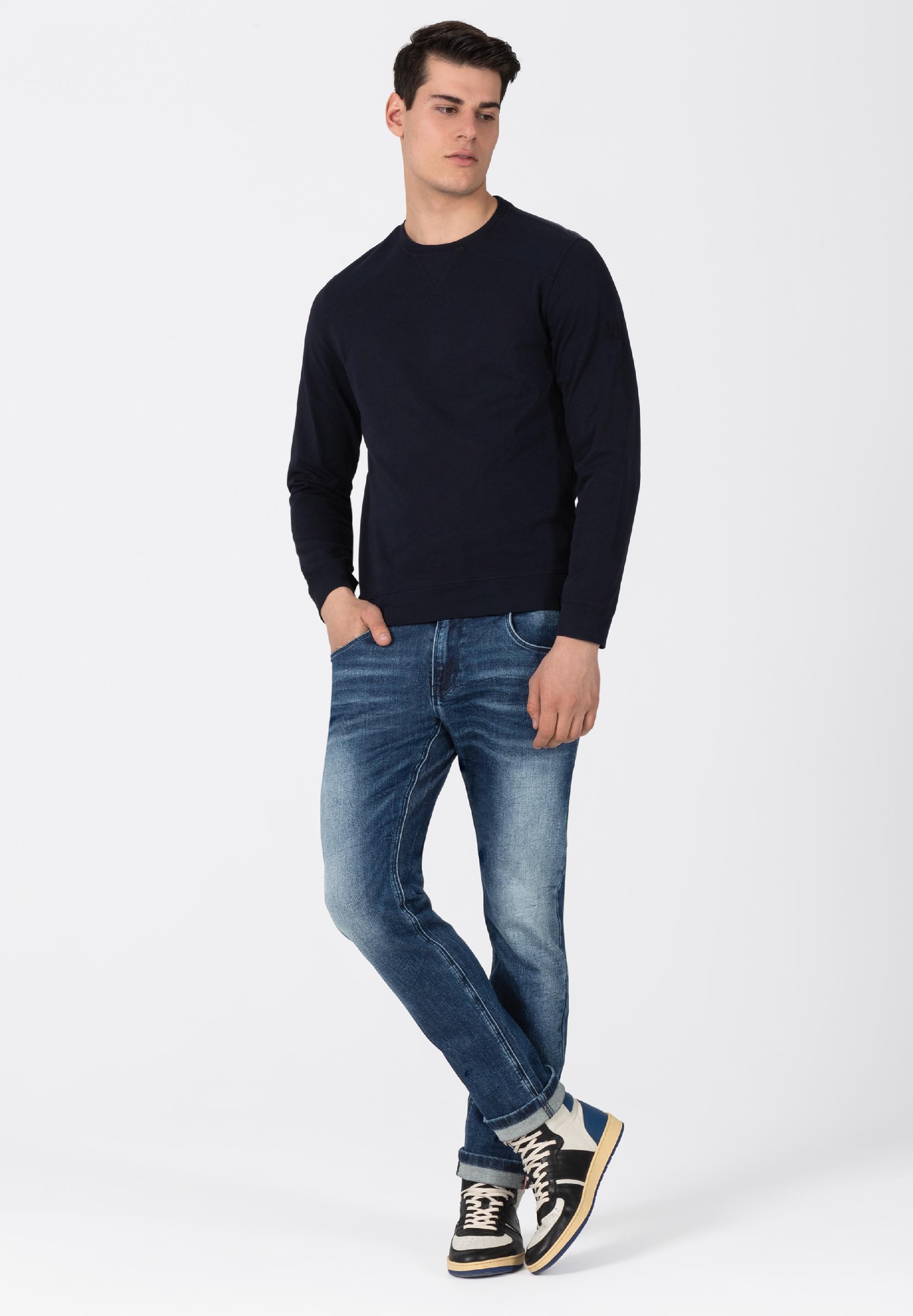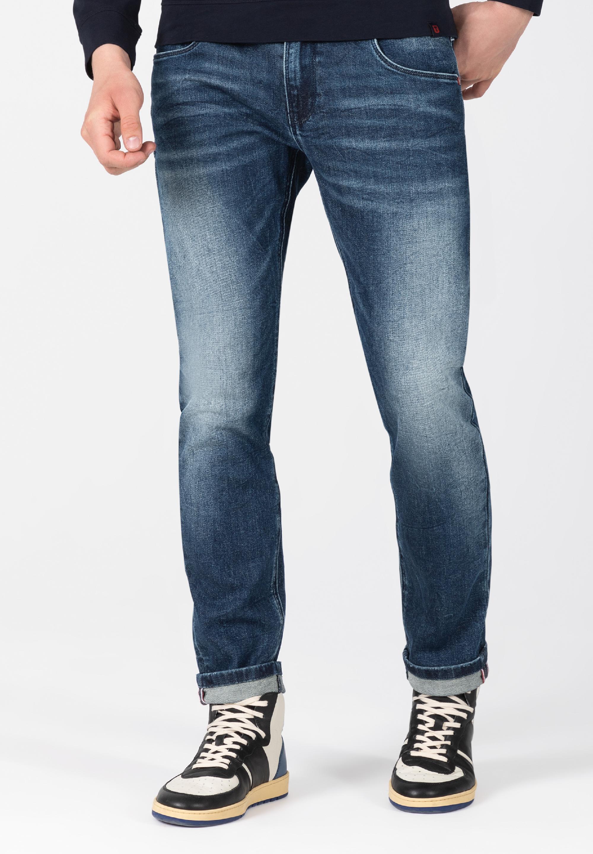 Gehört mit zu den beliebtesten Jeans-Schnitten und ist absolut unverzichtbar: Der Slim Fit. Dieses Modell bietet neben der perfekten Passform mit mittlerer Leibhöhe und X-Slim-Legs auch noch die perfekte Waschung. Brushed Indigo Wash. Authentisch mit eingearbeiteten Sitzfalten und helleren Abriebstellen. Die Qualität: Eine kernige, trockene Denim-Stretch-Ware aus Baumwolle-Mix mit Elasthan. Cool: Das Selvedge-Detail an der gekrempelten Seitennaht. Five Pocket-Stil mit Details aus echtem Leder.