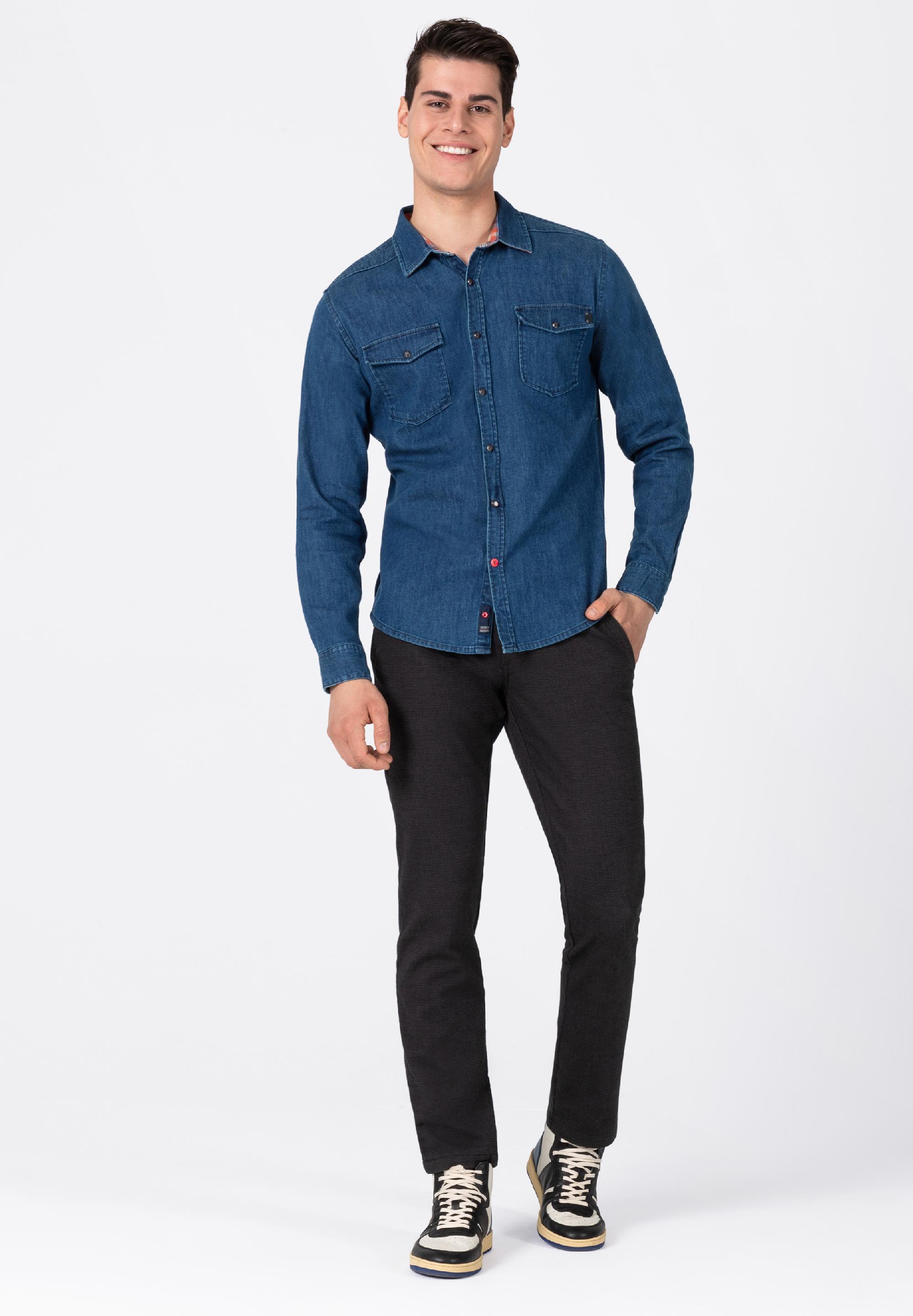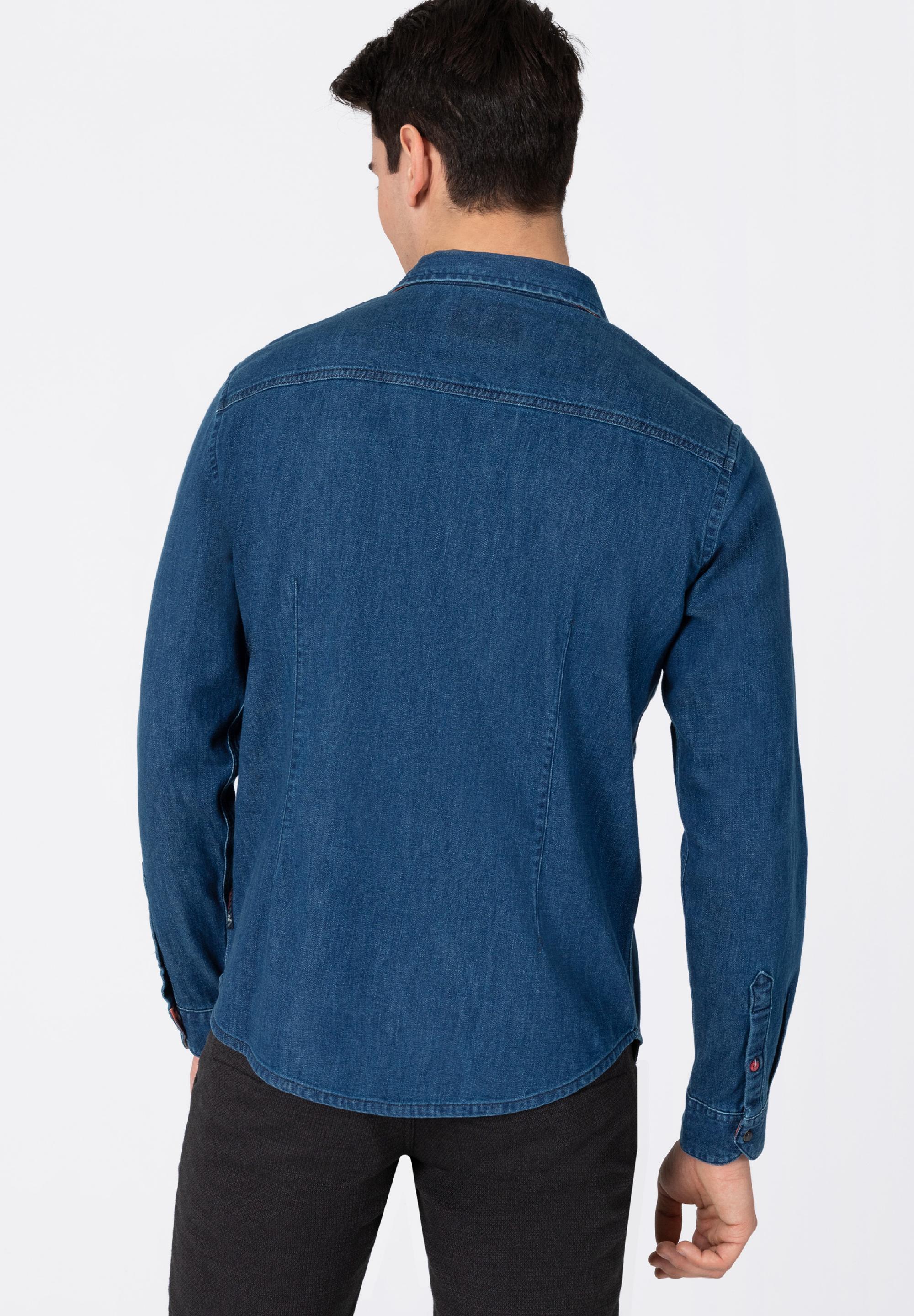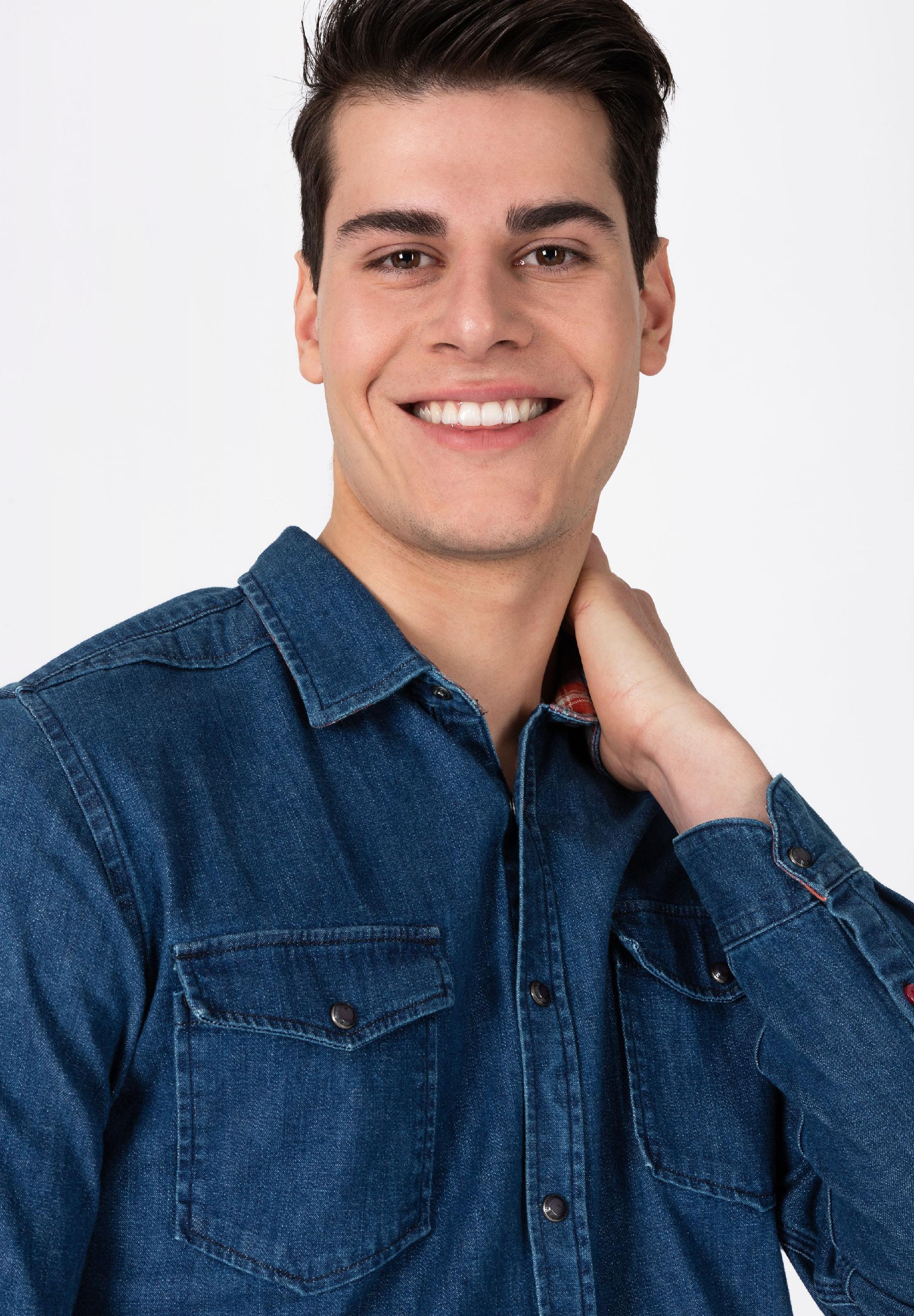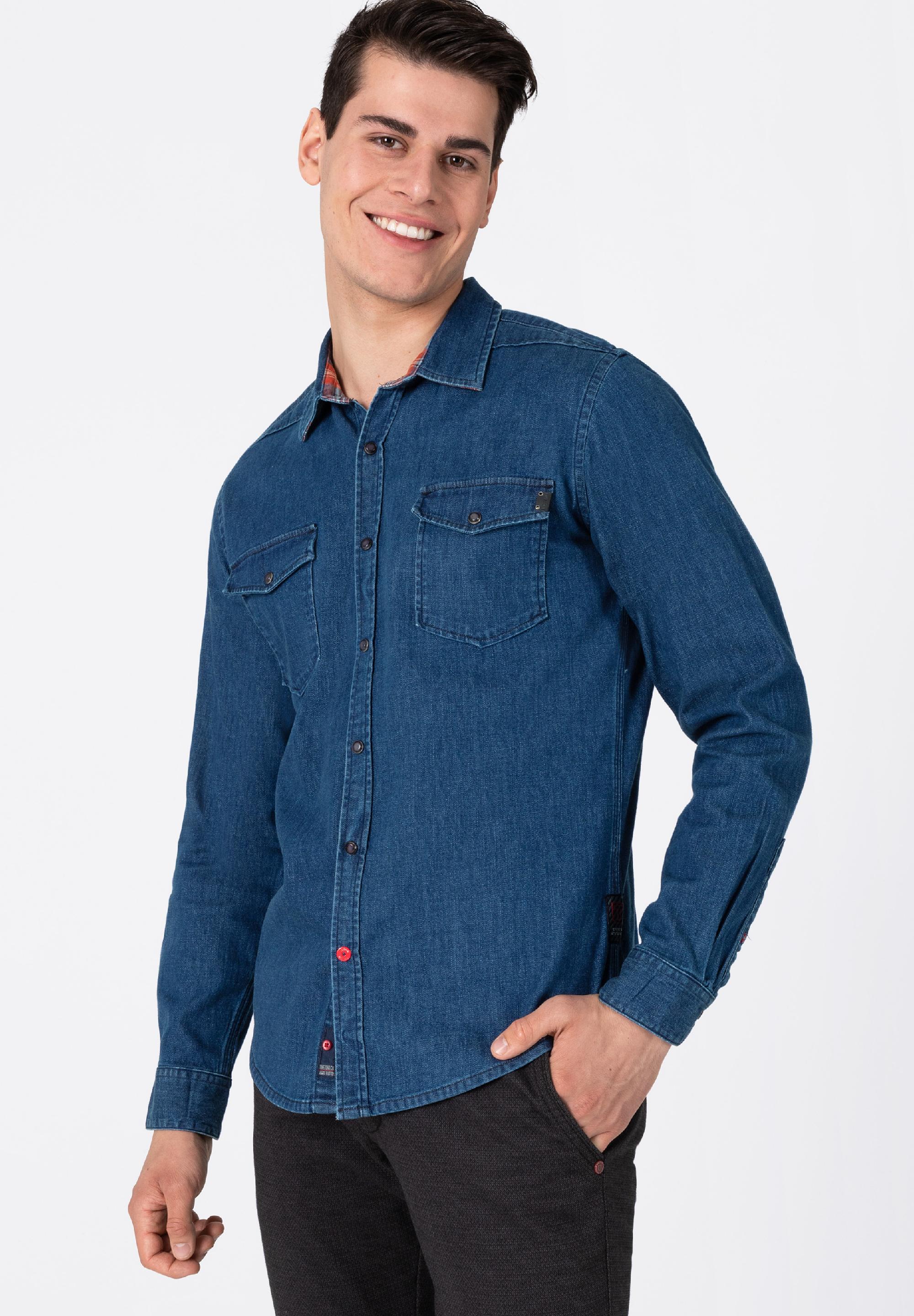 Jeans zu Jeans, ein Trend der uns auch diesen Herbst/Winter noch begleitet. Perfekt dafür das superlässige Denim-Langarm-Hemd aus hochwertiger, stretchiger Baumwolle-Mix-Qualität. Modell mit Kentkragen, edlen Logo-Druckköpfen, zwei aufgesetzten Brust-Klappentaschen und einem abgerundeten Saumverlauf. Mit strapazierfähigem Triple-Stitching und subtilen Kontrast-Karo-Details. Styling-Tipp mit Overshirt-Charakter: Auch mal offen über ein T-Shirt tragen.