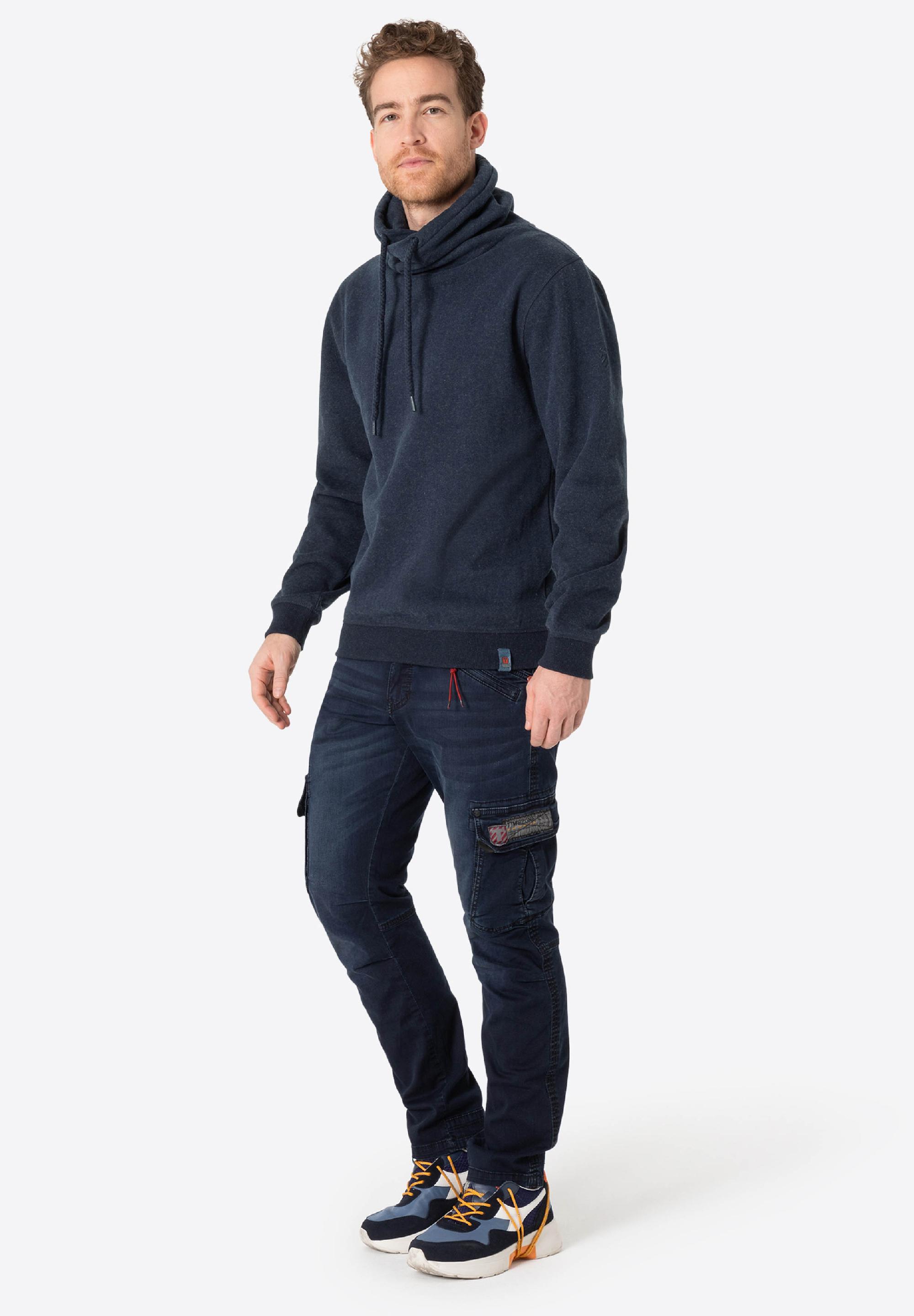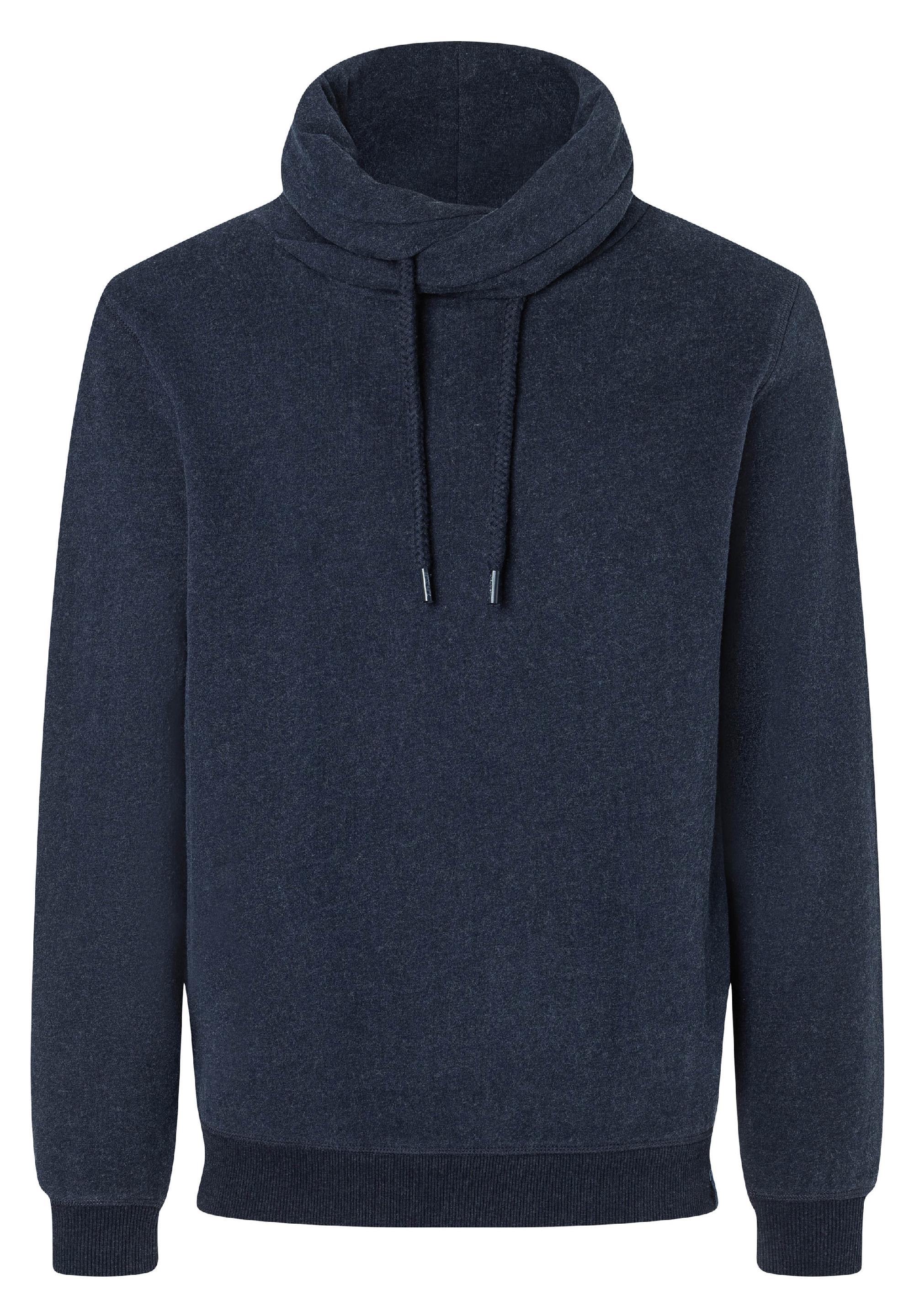 Lässiges Feel-good-Modell mit moderner Kragenlösung für einen angesagten Smart-Casual-Look: das entspannt geschnittene Sweatshirt mit locker fallendem Schalkragen und geflochtener Rundkordel im XL-Format. Die Qualität: ein sehr softer, sanft gepeachter Melange-Baumwoll-Heavy-Terry mit superweicher, angerauter Innenseite. Die Features: überlappendes Kragen-Detail mit Tunnelzug, schräge Schultereinsätze auf der Rückseite und klassische Rippbündchen an Ärmeln und Saum.