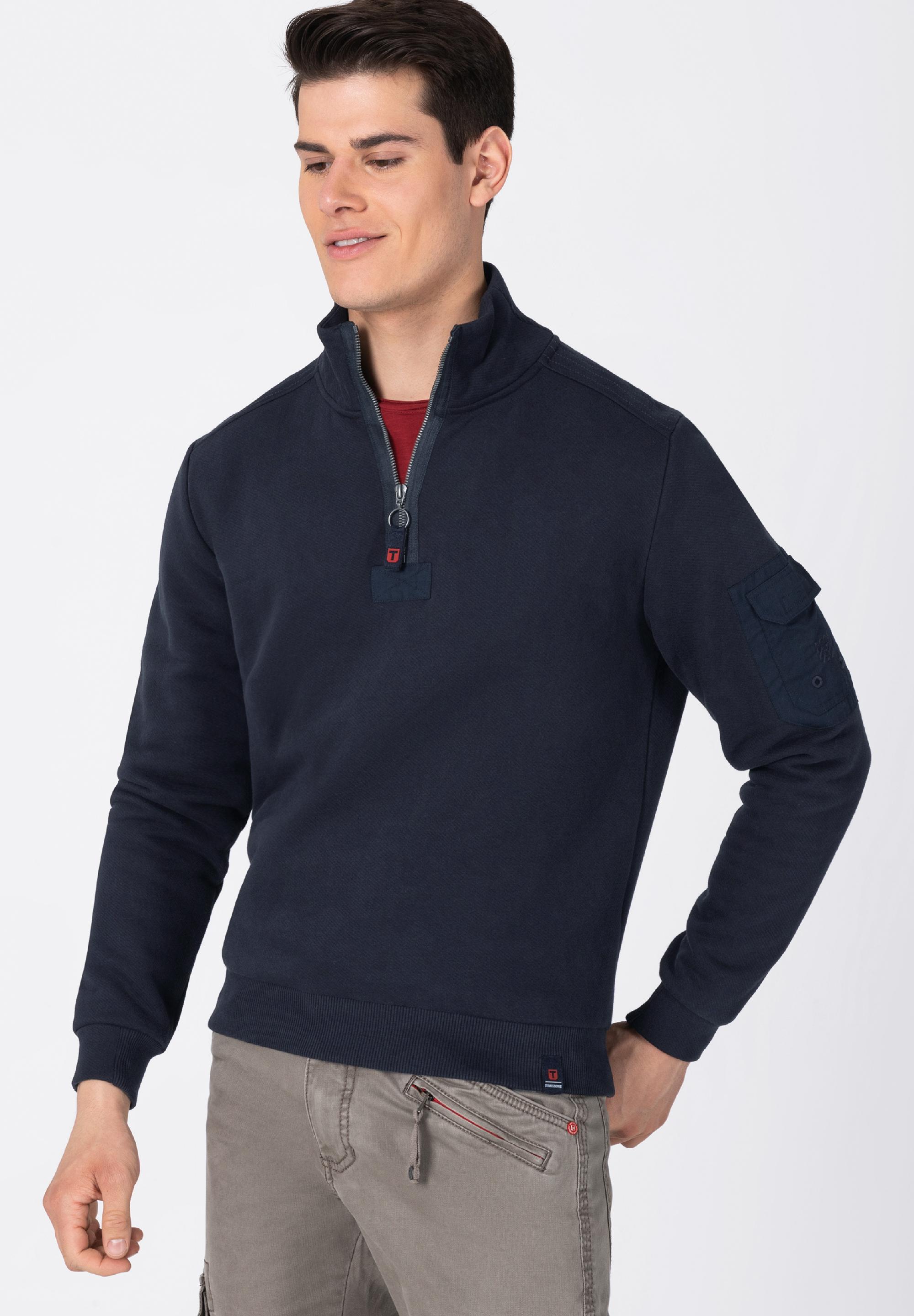 Ist besser als sein Ruf und feiert gerade ein Comeback: Das Half-Zip-Sweatshirt. Moderner als die Retro-Version, in hochwertigerer Qualität und mit neuen Update-Details. Das coole Piece ist aus weicher, gebrushter Baumwolle-Mix-Qualität mit kernig-softer Frottee-Innenseite gefertigt und hat einen hohen Stehkragen, den klassischen, halben Zipper und gerippte Abschlüsse an Ärmeln und Saum. Neu: Die mehrfach abgesteppte Schulter-Partie und die aufgesetzte Ärmeltasche aus leichtem Baumwolle-Twill.